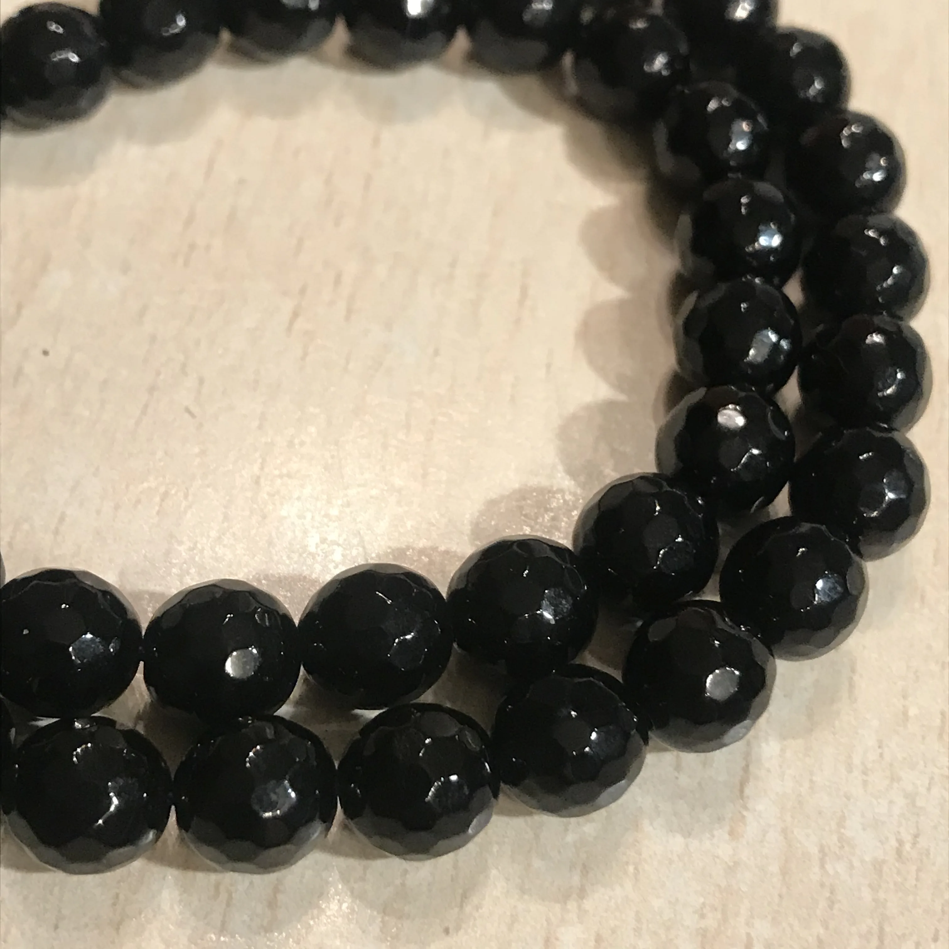 Браслет из натуральных граненых черных агатов Оникс Камень Бисер, 4681012 мм