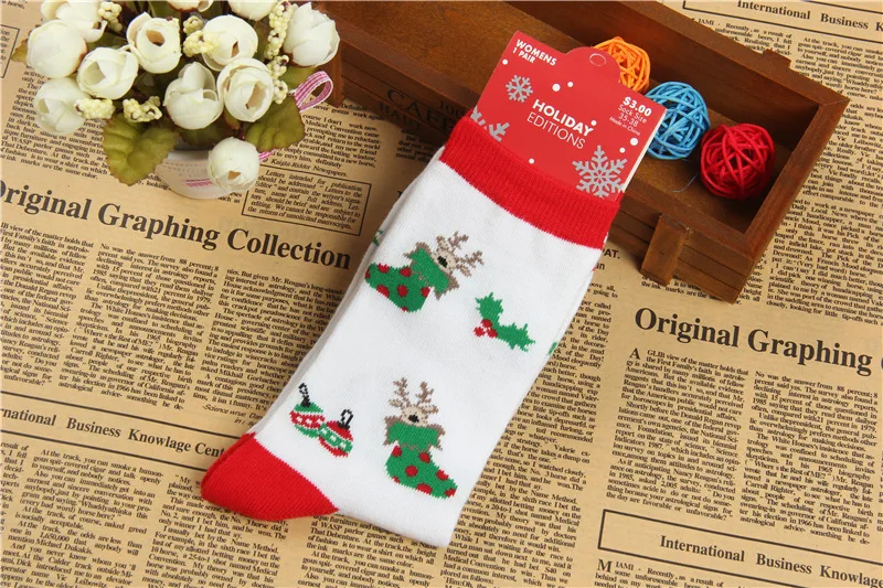 Модные зимние новые мужские рождественские хлопковые носки для отдыха женские толстые короткие Носки с рисунком оленя Санта Клауса чулочно-носочные изделия