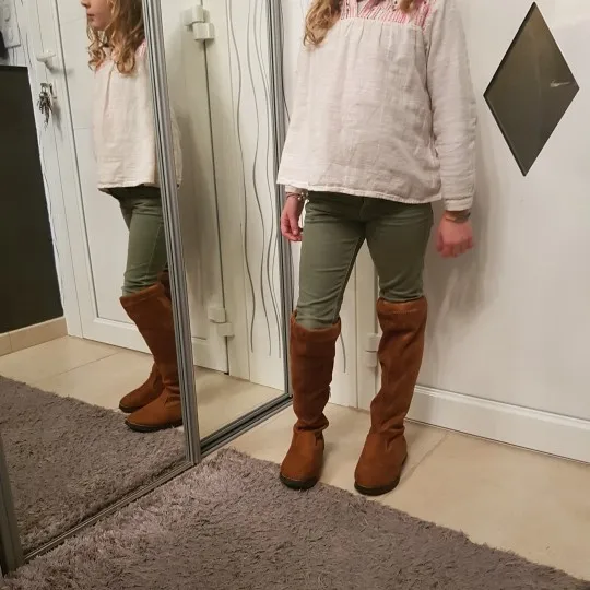.Сапожки супер. Продавец долго не отправлял заказ, но пришёл очень быстро, большое спасибо. Подходят больше на широкую ножку, у нас худенькая, поэтому в ширину свободно. А так в целом, довольны заказом. Таких в обычном магазине не купить.