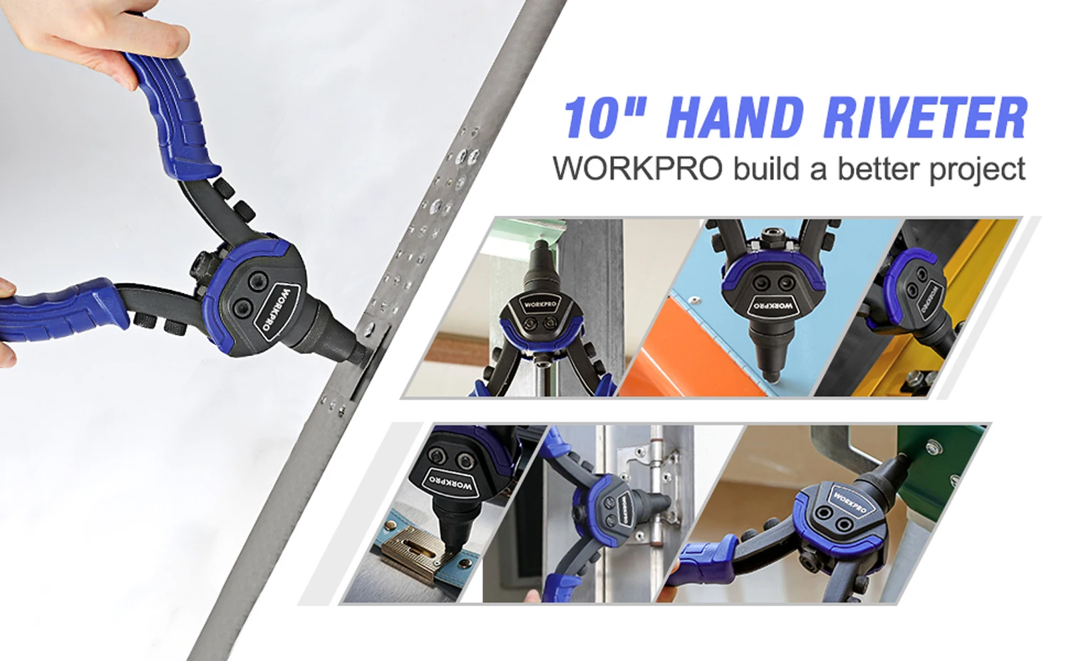 Ручной клепальный пистолет WORKPRO, 10 дюймов254 мм, с 5 сменными наконечниками, 100 шт.