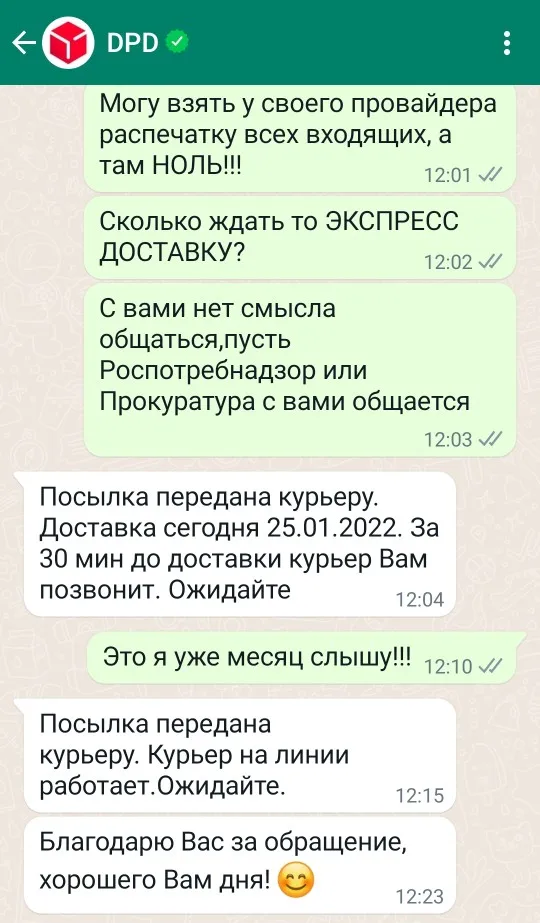 Ни какой радости от заказа!!! Ебу-ая доставка DPD всё обосрала!!! Больше месяца ебала мозг, то клиент не отвечает,то клиента не было, лживые уроды,на любом сайте от ютуба до обычного,посмотрите отзывы об днище DPD!!!Везде отвечает бот,только волшебные слова- прокуратура, заставили выйти на связь реального человека...