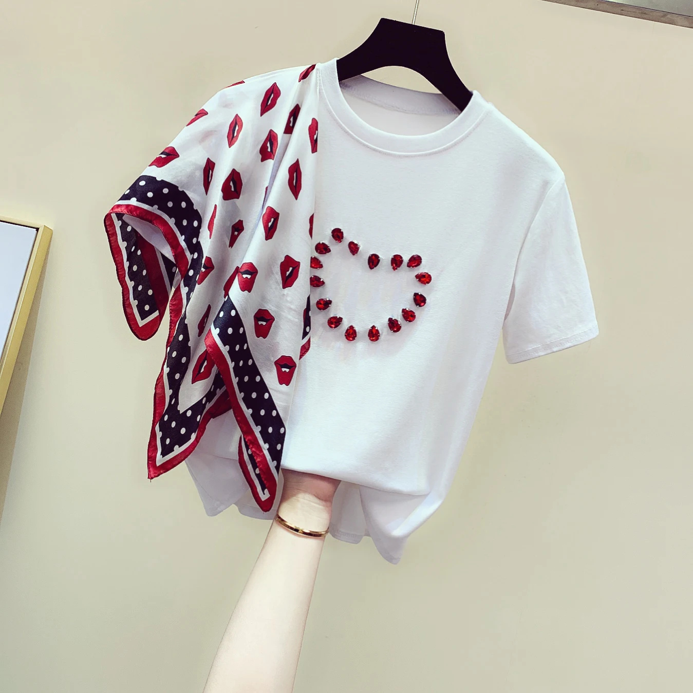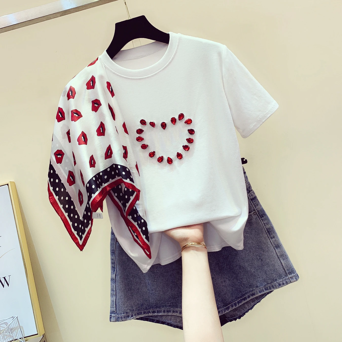 Женская футболка с коротким рукавом, с принтом в виде сердца