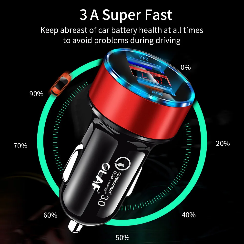 30 Вт 3A быстрое автомобильное зарядное устройство Quick Charge 3,0 Dual USB для iphone XR XS Max Xiaomi Мобильный телефон зарядное устройство автомобильного прикуривателя