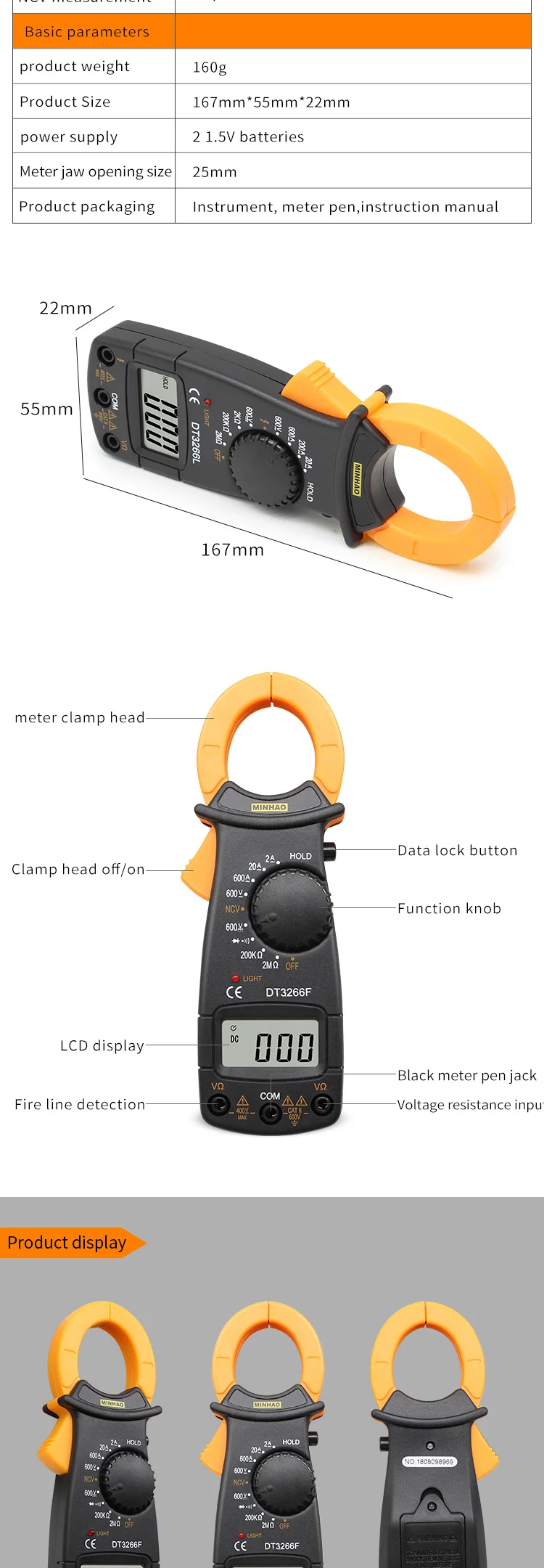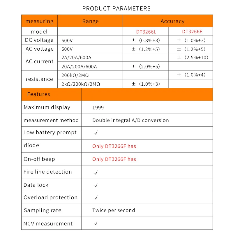 DT-3266L Цифровой амперметр, мультиметр, токовые клещи, клещи для измерения токовых клещей, вольтметр, амперметр, ток 600А
