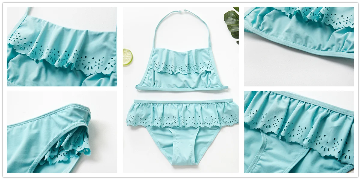 Купальник для девочек, раздельный, высококачественный, с рюшами, дл...