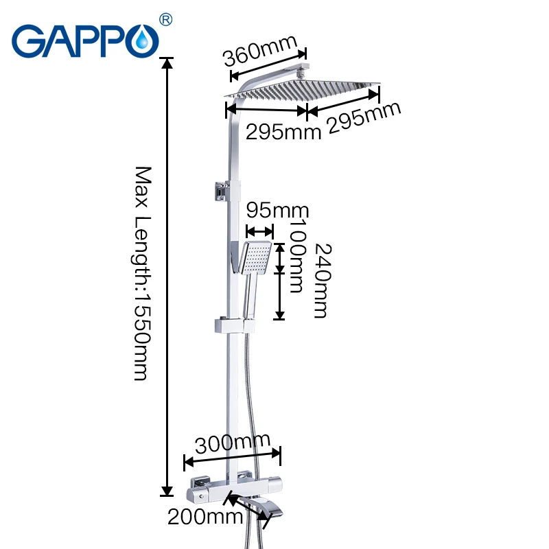 Смеситель для душа GAPPO, термостатический душевой набор, дождевая ...