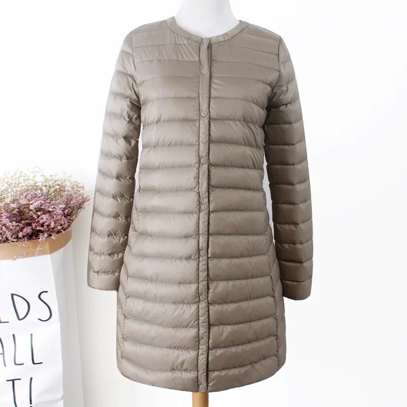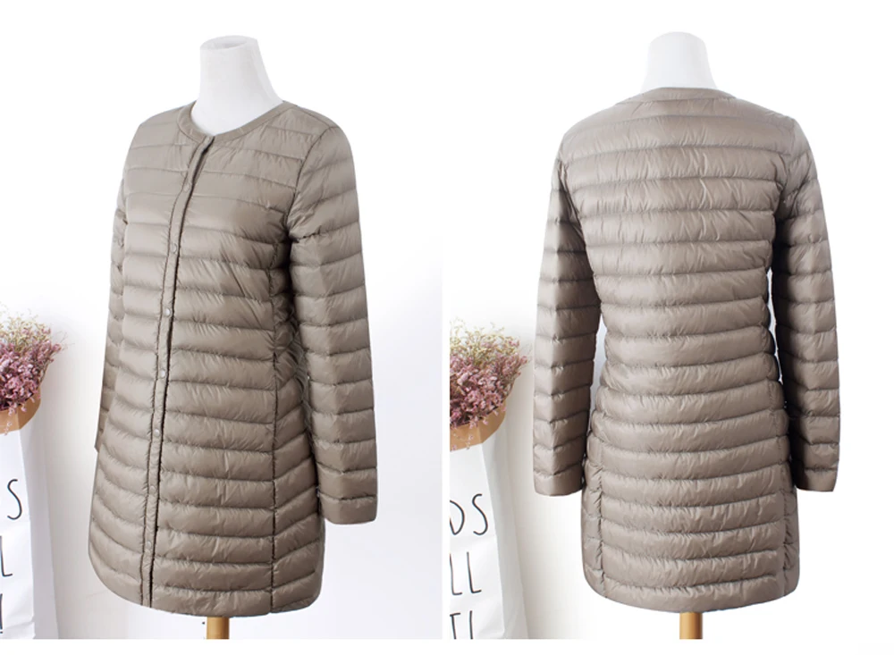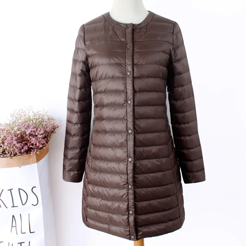 Женский ультрадлинный пуховик, тонкий однобортный теплый пуховик на белом утином пуху, светильник с круглым вырезом, для зимы