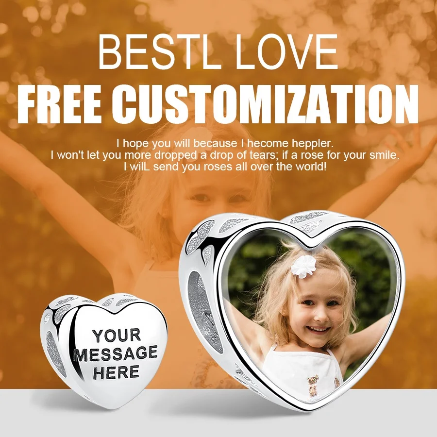 ELESHE 925 стерлингового серебра на заказ фото на персонализировать Sweet Love (Сладкая любовь); Сердце бусины для браслетов и ожерелий для изготовления ювелирных изделий