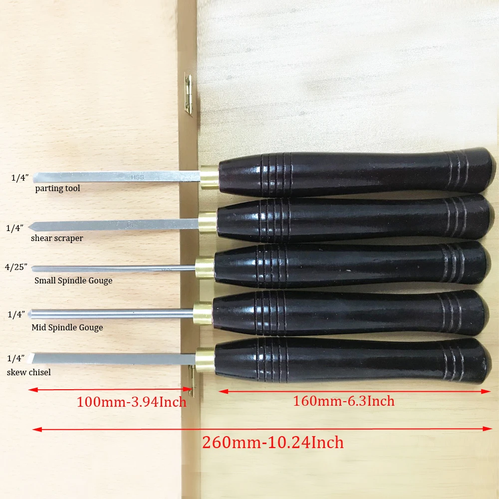 (1) высококачественные долговечные HSS лезвия HRC 57-62 W4Mo3Cr4V1 с красиво повернутыми и окрашенными деревянными ручками и латунными наконечниками (2) зубил, 10,24-дюйм) общая длина, модель выполнена из 4 дюймовые лопатки (3) приятные покупки для пяти основных зубцов (4) поставляется в идеальной деревянной витрине (5) острое белое стальное лезвие является первым выбором для профессиональных деревянных работников
