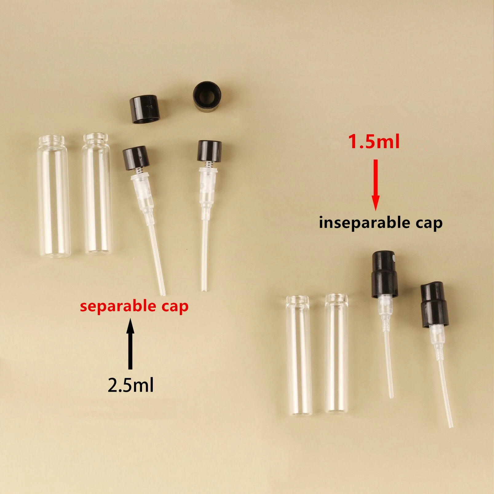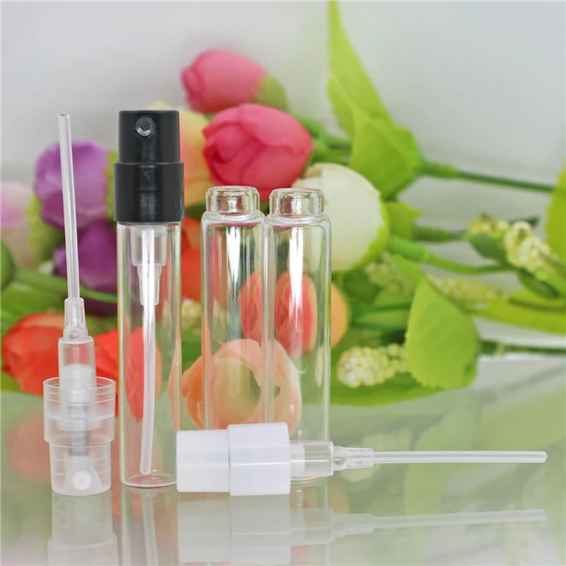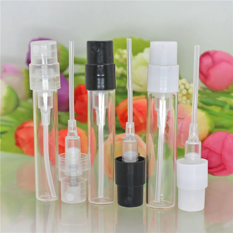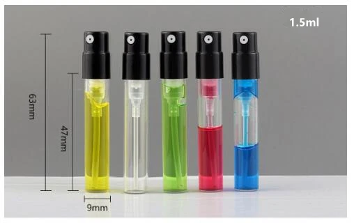 1,5 мл 2 мл 2,5 мл стеклянная бутылка с байонетом с белым черным прозрачным 3 цветным пластиковым распылителем Образец бутылка-распылитель 100 шт