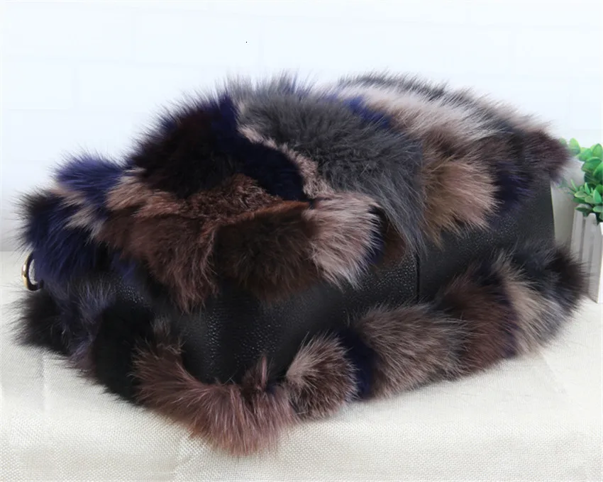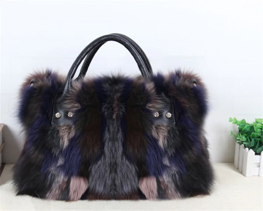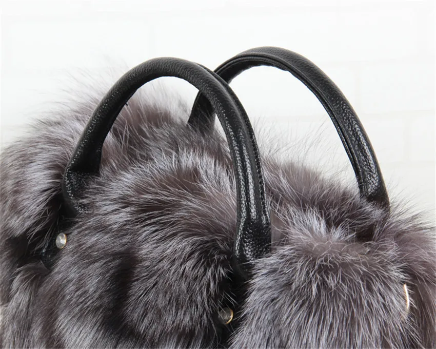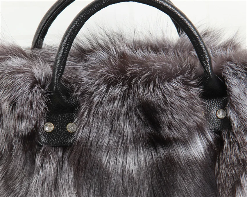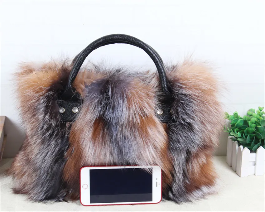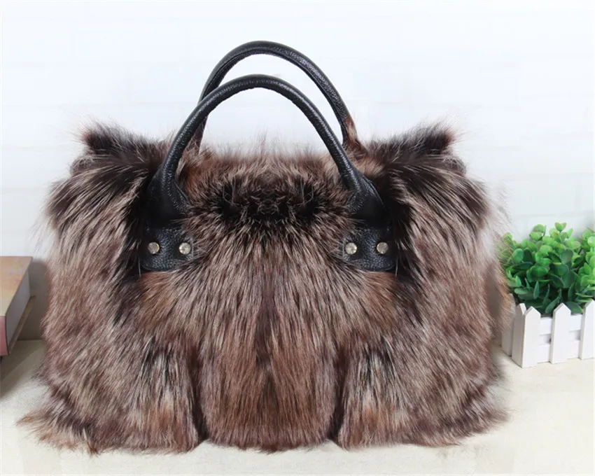 Новая модная кожаная сумка с травой, 100% Высококачественная цельная сумка с лисьим мехом, женская меховая сумка для покупок, незаменимая сумка B2