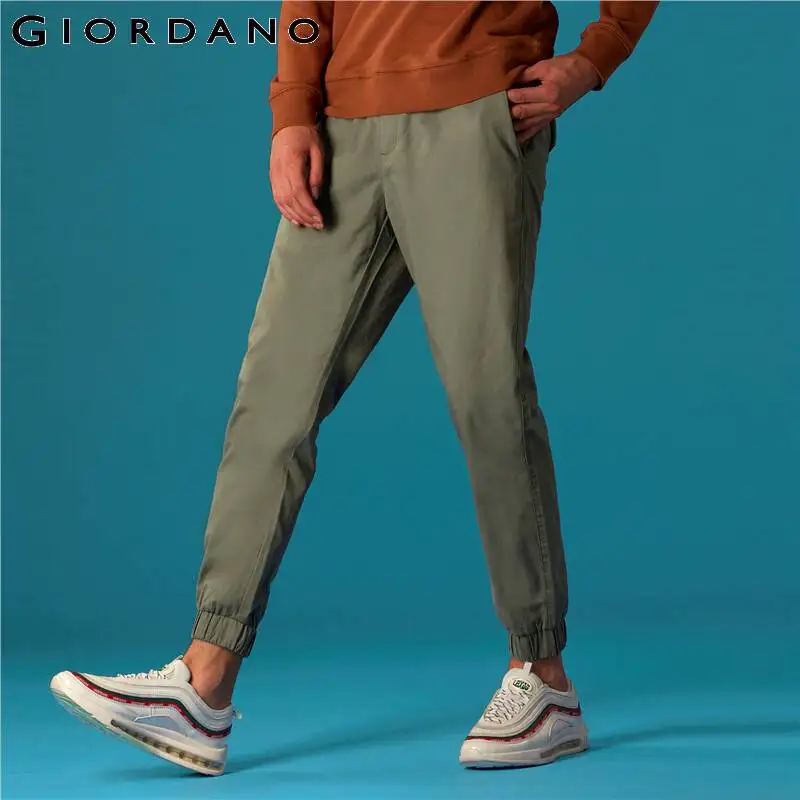 Giordano мужские повседневные брюки с резинкой на талии, и в районе щиколоток из натурального хлопка,имеется два варианта модели.