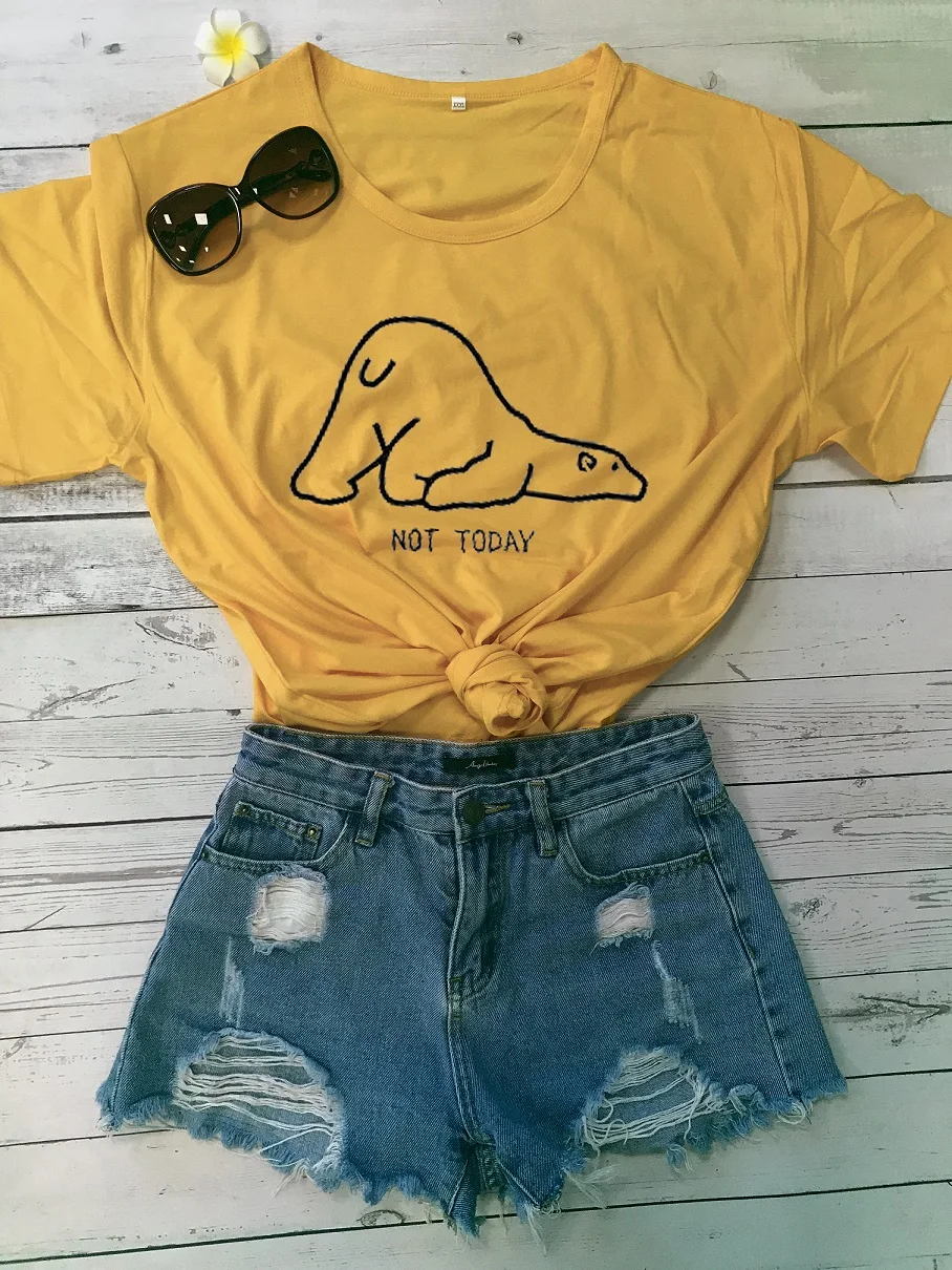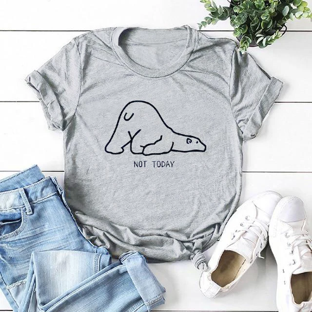 Футболка женская с принтом not today bear, футболка с коротким рукавом, цвет оливковый персиковый, одежда в летнем стиле