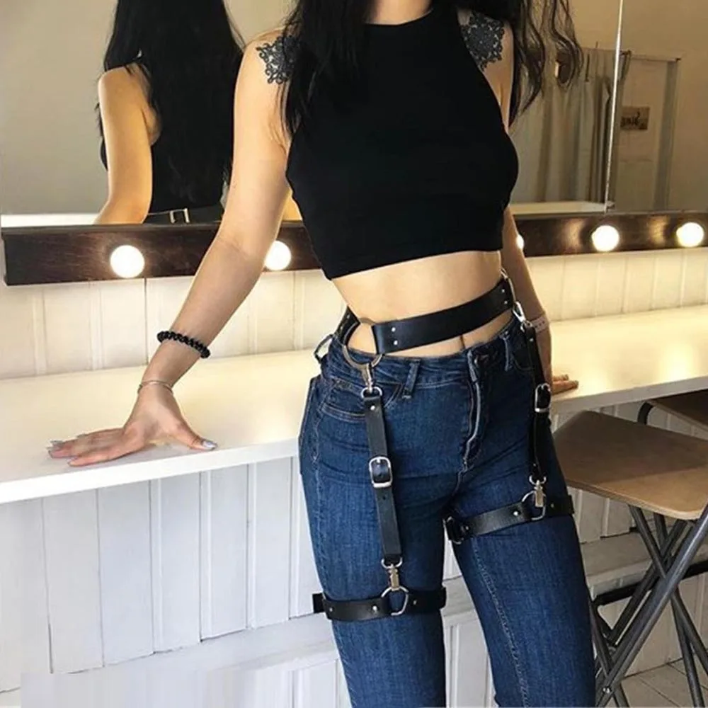 Женские кожаные ремни для тела, сексуальные подвязки, БДСМ, бондаж, ремень, от талии до ноги, ремни на подтяжках, Фетиш Экзотика, аксессуары сексигрушки секс игрушки 18 лет порнуха