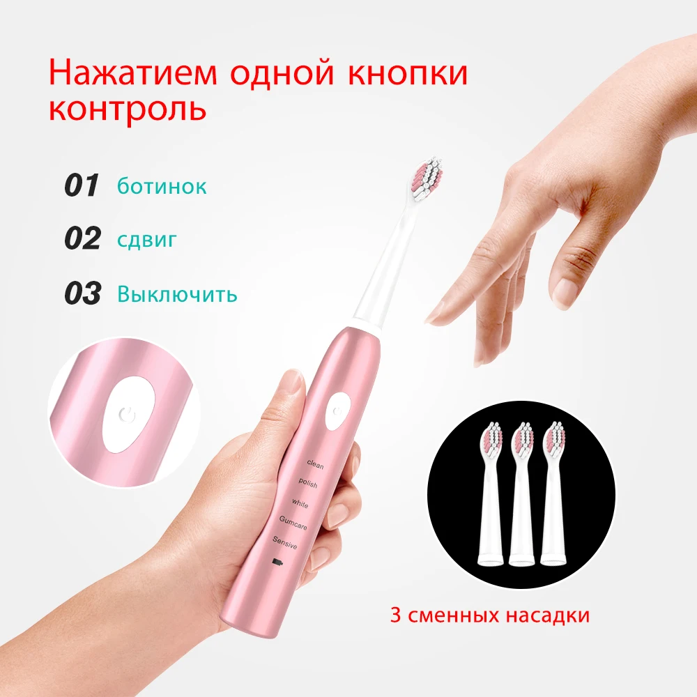 Ультра звуковая электрическая зубная щетка, перезаряжаемая зубная щетка, моющаяся электронная отбеливающая зубная щетка для взрослых с таймером