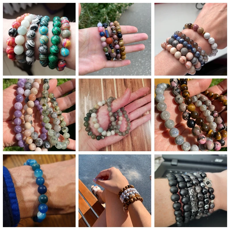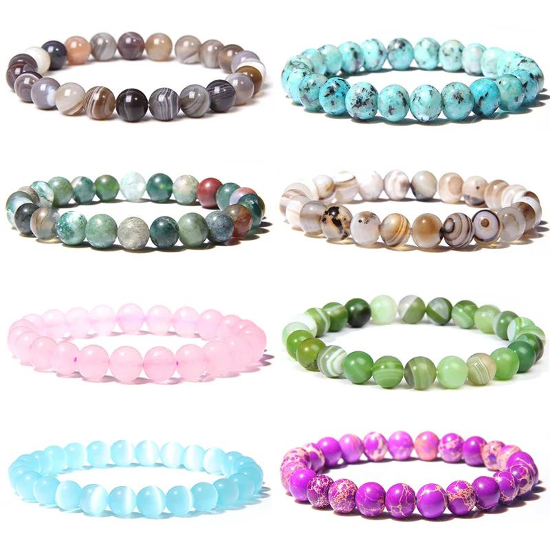 Браслет из натуральных камней, с бусинами 8 мм, из лавового агата, кварца, чакры, браслеты для йоги