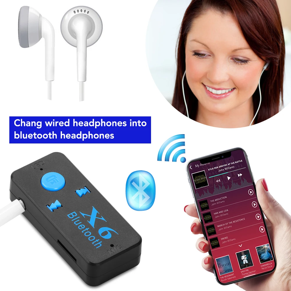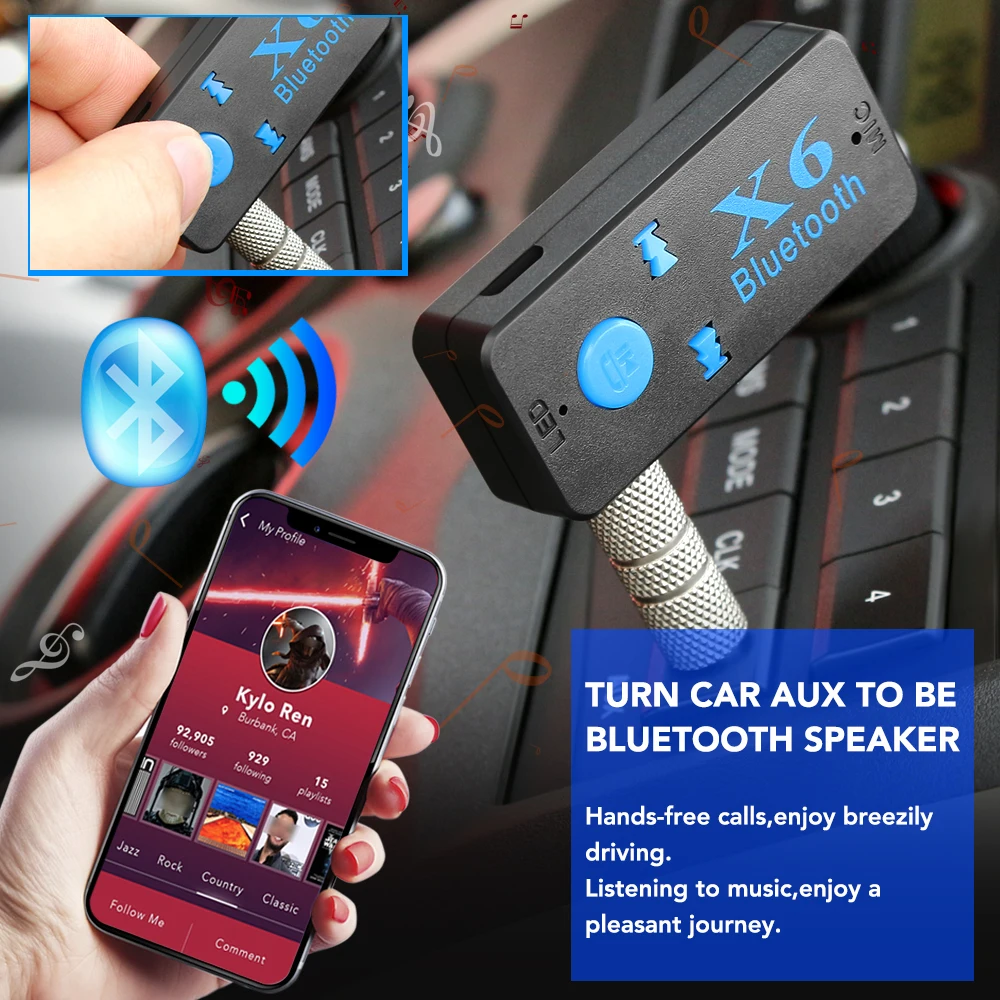 Автомобильный Bluetooth-музыкальный приемник X6 (Hands-free)-это высокотехнологичный Беспроводной продукт, который может принимать музыку на мобильный телефон или TF-карте или передатчике с поддержкой Bluetooth. Этот музыкальный ресивер используется для практически все аудиоприемники с входными разъемами, в том числе автомобильные. Вы можете принимать музыку со смартфона и MP3 на домашних колонках или звуковой системе автомобиля. Наслаждайтесь музыкой supreme car, решениями для вызовов, используйте смартфоны через автомобильный аудиовызов и слушайте музыку. Аккуратно нажмите для вызова, Наслаждайтесь музыкой, хранящейся в телефоне или даже воспроизведением Интернет-радио. Изделие с встроенным микрофоном подавления эха, только кнопка может быть легко в музыке и телефонном переключении между.