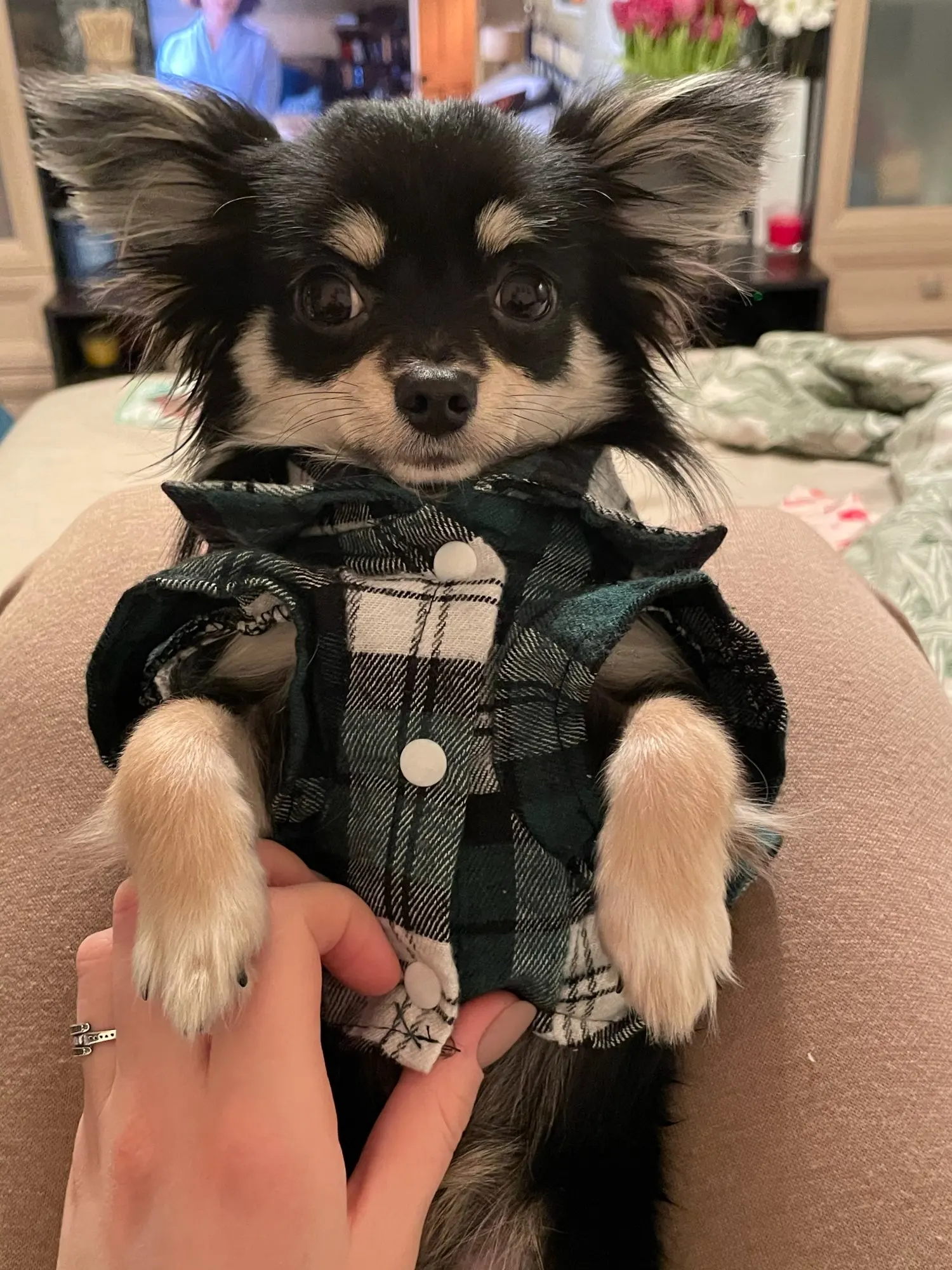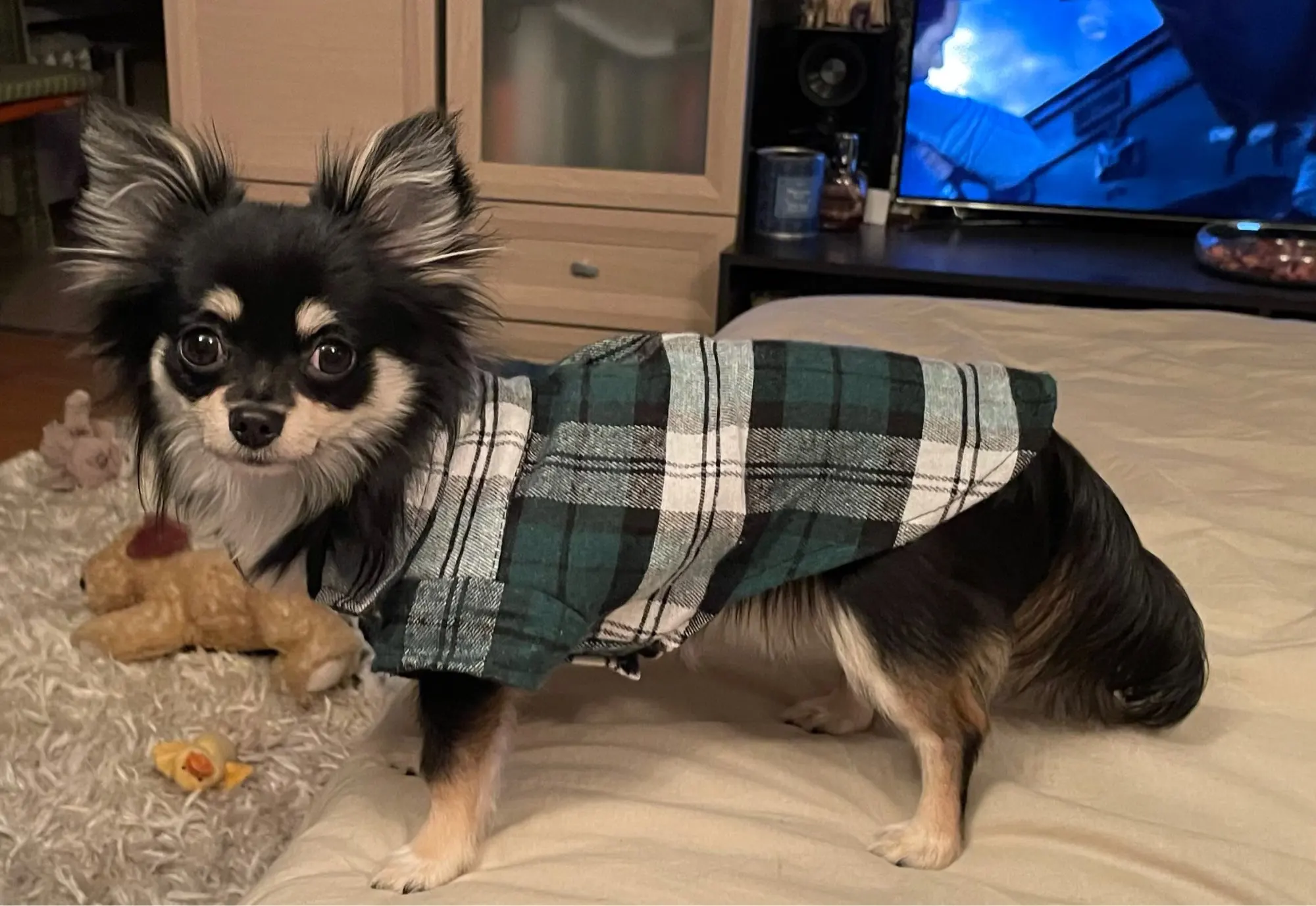 Шикарная рубашка! Нарядная, мягкая, с надежными кнопками. На чиха (вес 3 кг, спинка 25 см) села идеально. Псу очень нравится! Доставка быстрая. Огромное спасибо продавцу! Настоятельно рекомендую!