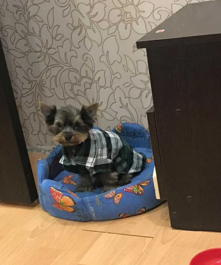 Около 2,5 кг мужского йоркширского терьера. <2en> рубашка хорошего качества, мне нравится. Он прибыл в Москву через две недели.