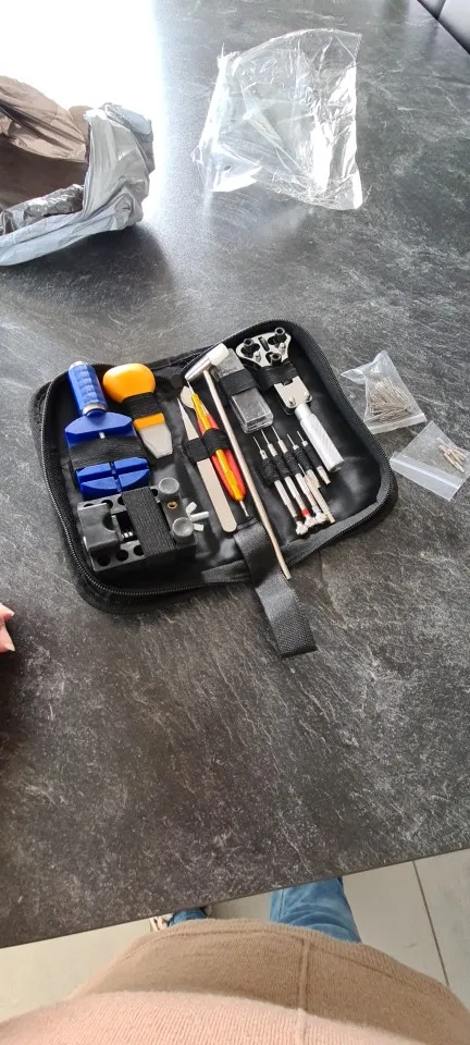 Набор получен в течение 1 недели при выборе Франции в качестве страны доставки. На данный момент инструменты позволяют мне открыть чехол для наручных часов. Чтобы изменить его, я должен был использовать «Буле», купленный у другого продавца.