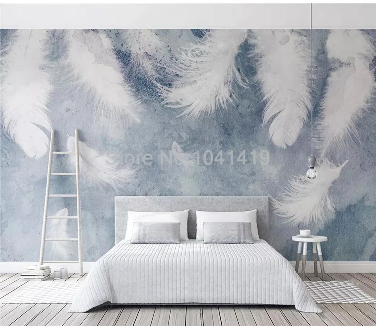 Самоклеящаяся водостойкая настенная бумага на заказ, современные белые перьевые чернила, настенная живопись, гостиная, спальня, Арт, Настенная бумага