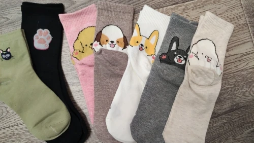 Думала, что будут хуже, а тут порадовала качество. Плотные, резинка очень приятная, хорошо держится носок на ноге. На размер 37 не перетягивают, а собачки на том же месте, как и у модели в описании товара