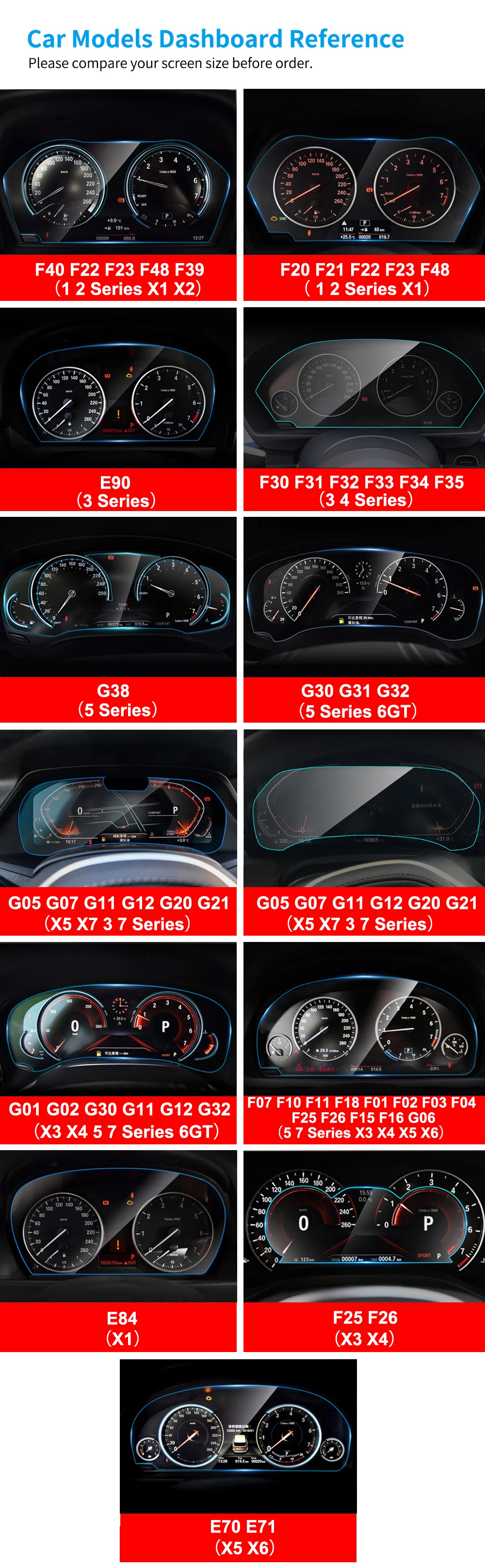 Защита экрана автомобильной приборной панели для BMW F22 F40 F39 F48 G05 G07 G11 G12 G20 F30 F32 F33 F34 F35 E90 G38 F20 F23