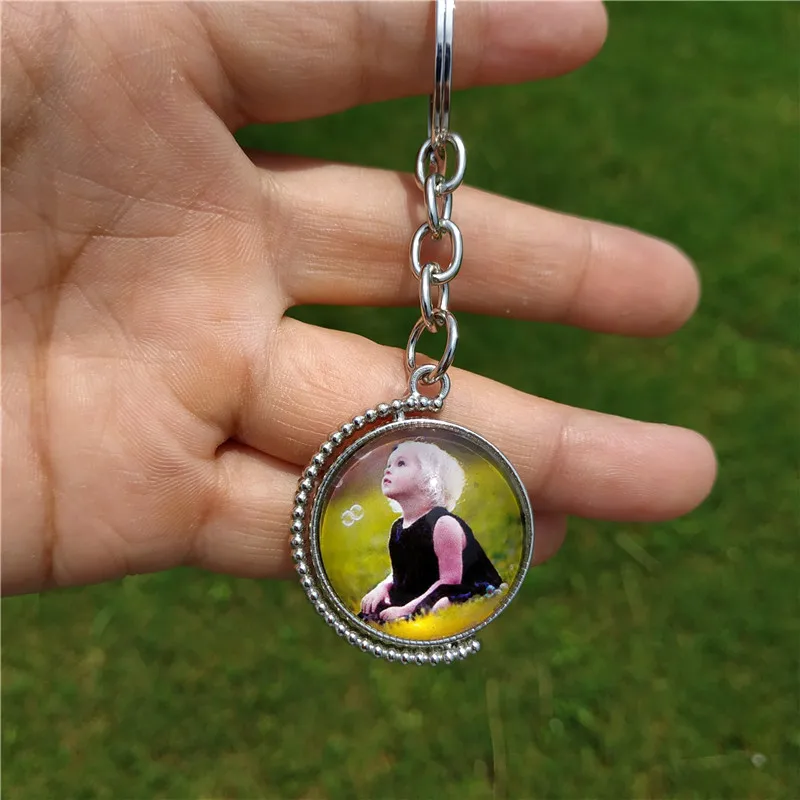 Двойная боковая вращающаяся пользовательская цепочка для ключей стеклянные милые персонализированные Детские Семейные влюбленные ФОТО специальная Дата пользовательские брелоки
