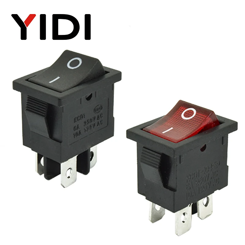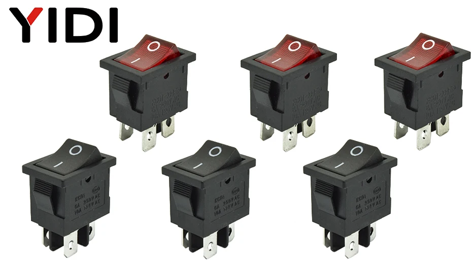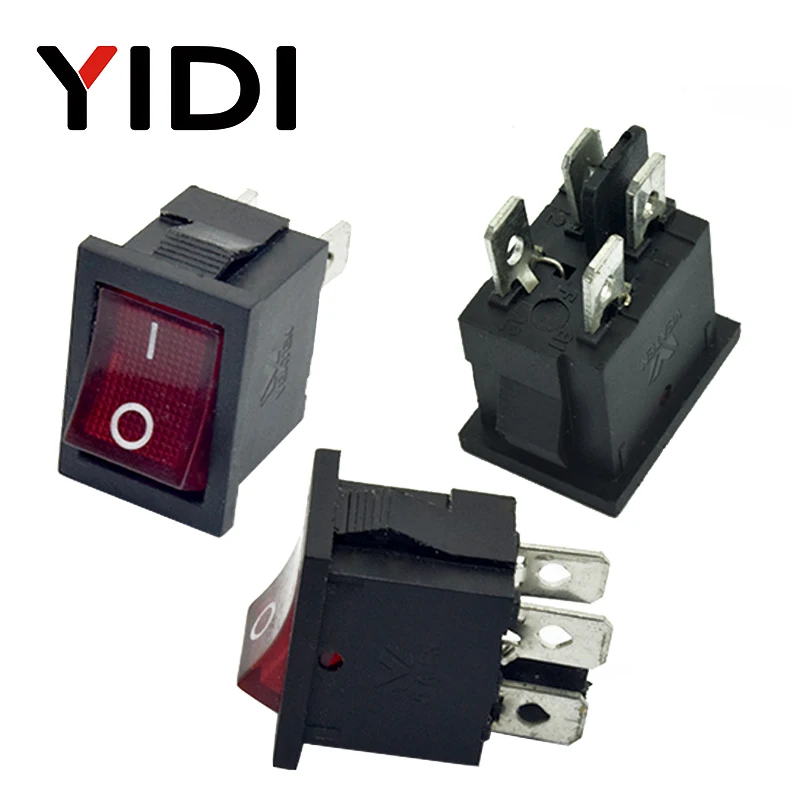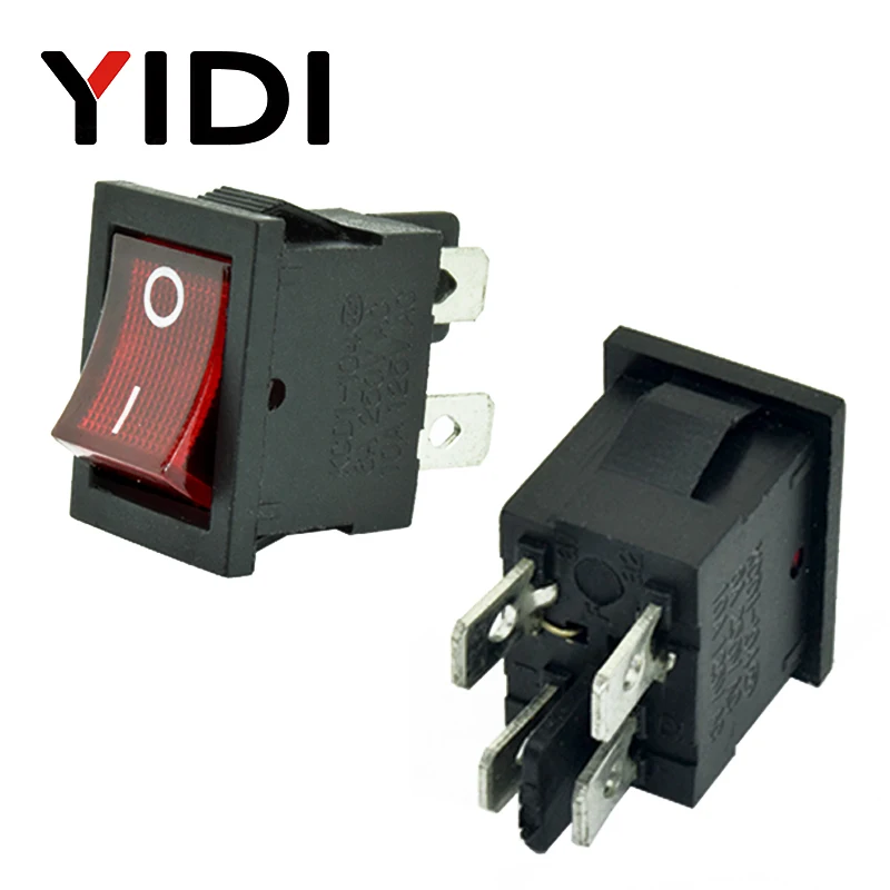 6A 250VAC KCD1-104 кулисный переключатель 4pin вкл. Выкл дпст 12 В 220 В красная лампа черный защелкивающий 15x21 двухпозиционный переключатель