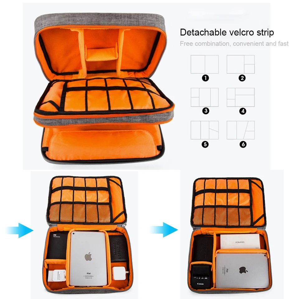 Двухслойные электронные аксессуары сумка для игр отдельная комната и отсоединить полосы портативный органайзер чехол для iPad, жесткие диски, кабели,