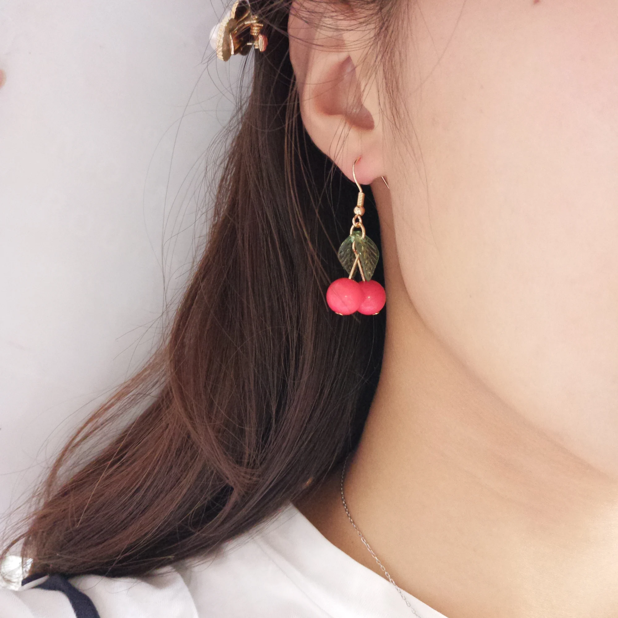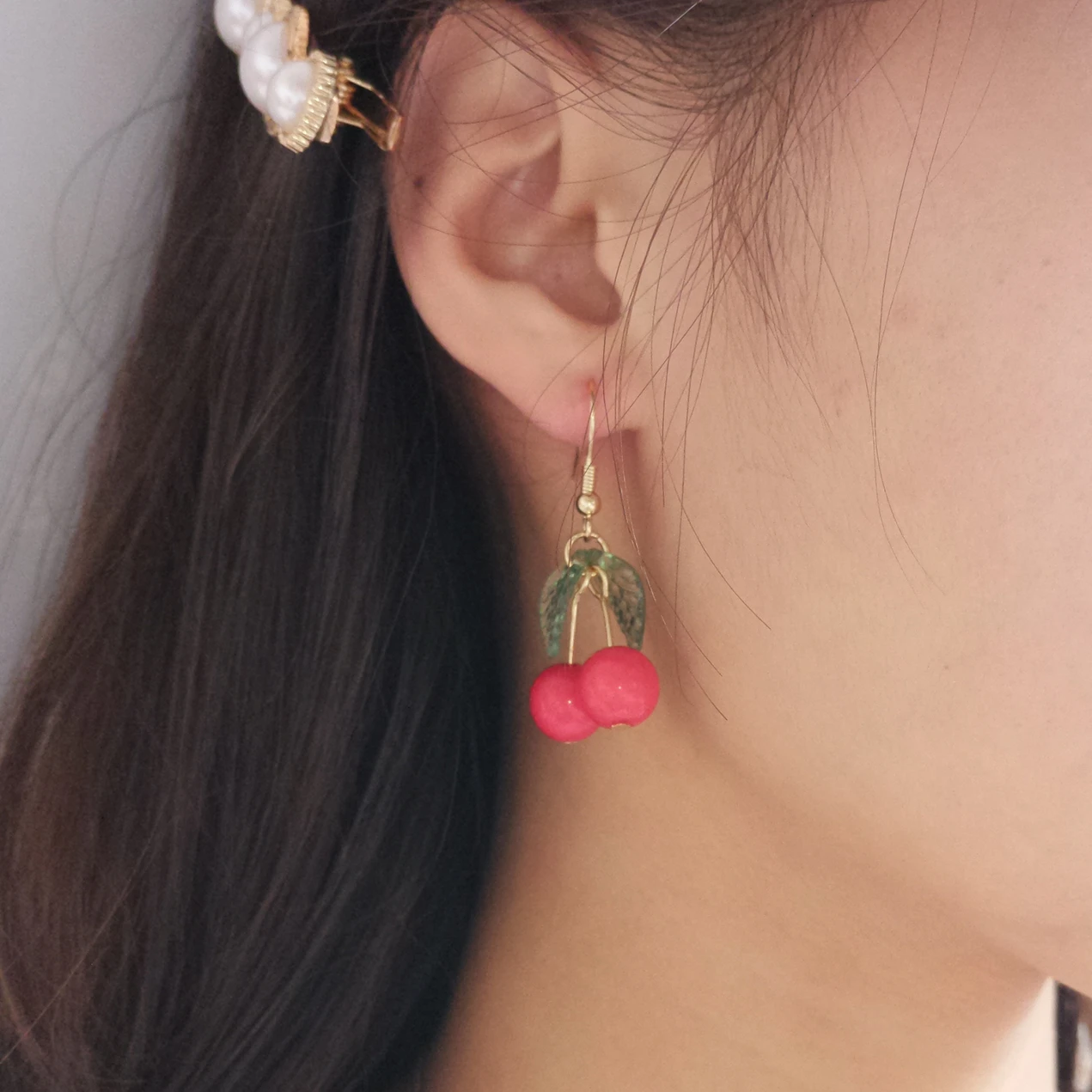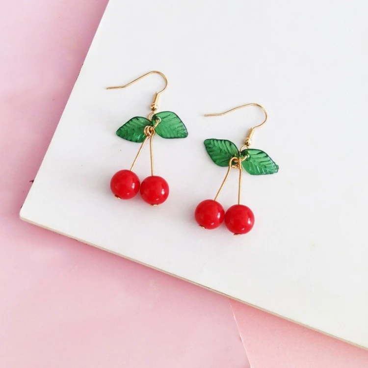 Популярные Красные вишневые серьги, серьги-капли, милые фрукты, свежие вишневые серьги, женские модные Молодежные красивые серьги для девушек и студентов для женщин