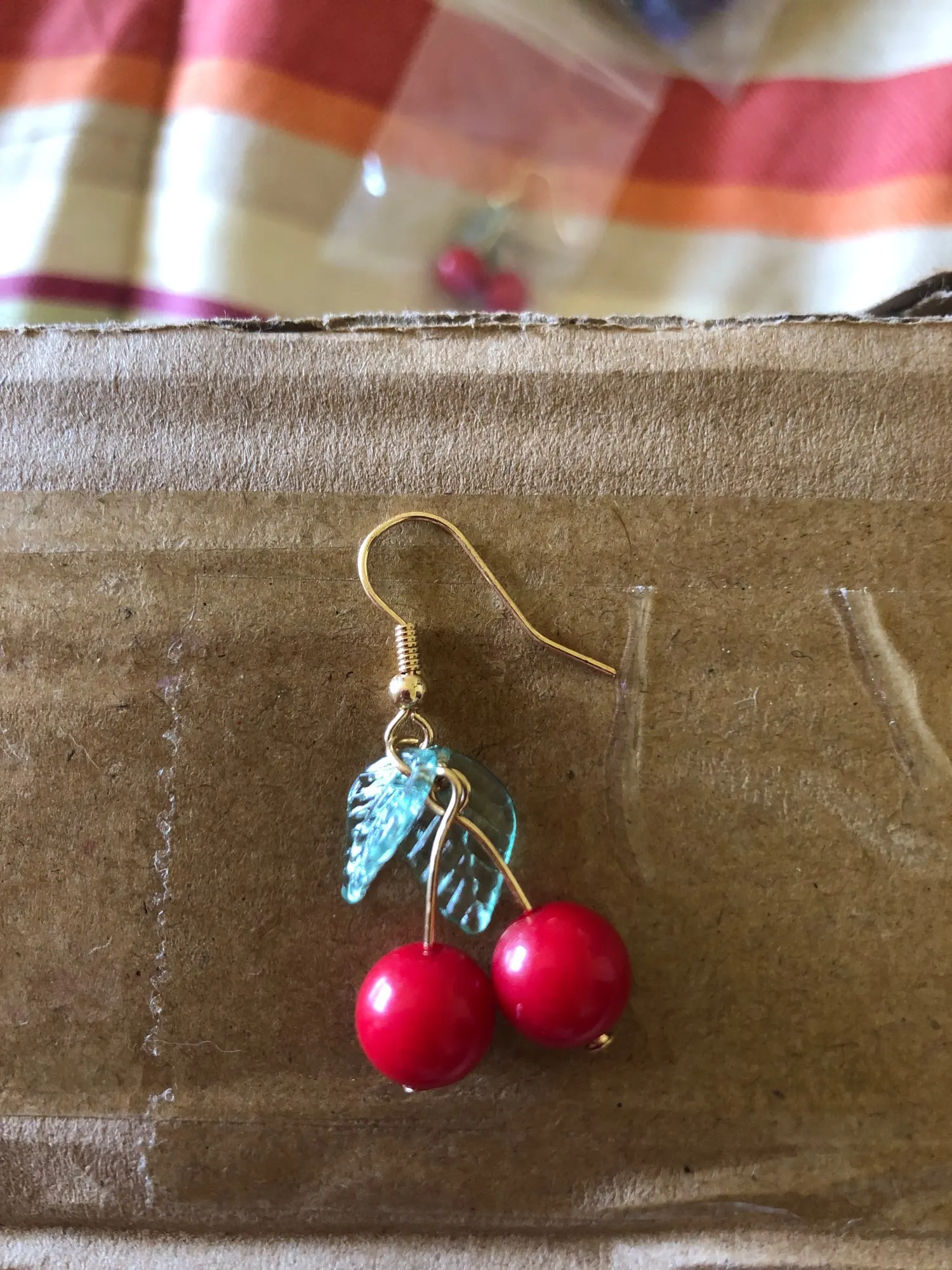 Серьги-подвески женские, красные, Вишенки, в форме фруктов