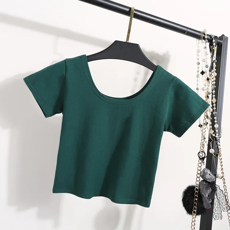 Лидер продаж, пикантный укороченный топ с U-образным вырезом, женская футболка с коротким рукавом, футболка, короткая футболка, базовые эластичные футболки, женские футболки в стиле Харадзюку