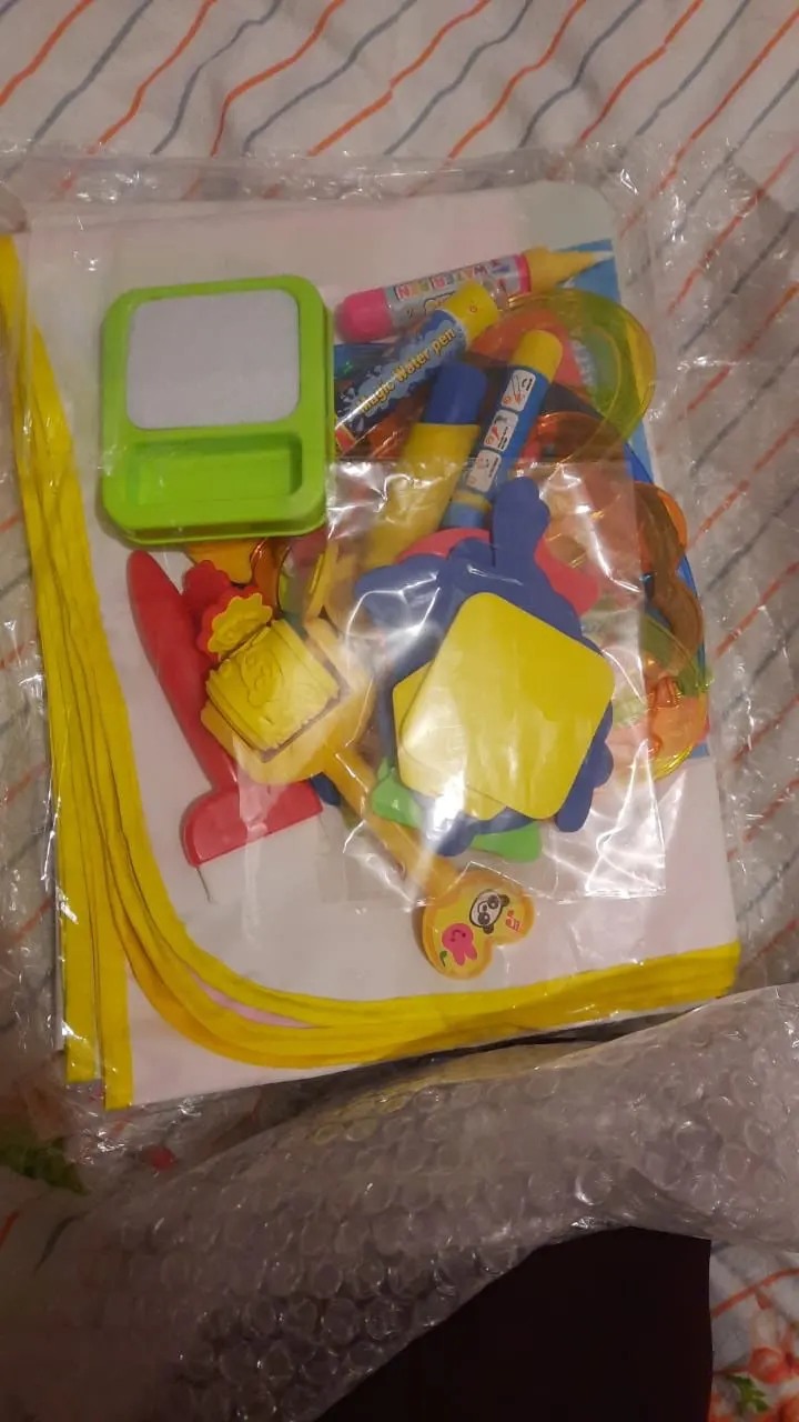 Быстрая доставка. Большой коврик, ещё не пробовали рисовать, куплен в качестве подарка ребенку на Новый год У коврика есть небольшой запах, надо проветрить. Выглядит хорошо и коврик и предметы для рисования.