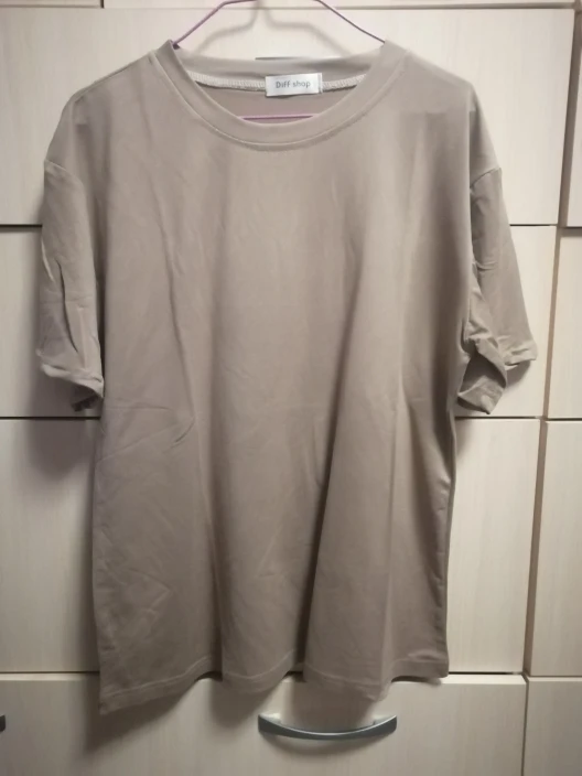 футболка по внешнему виду и на ощупь очень приятная(хлопок+ немножко лайкра),пока что не носила и не стирала,цвет спокойный,нюдовый,презентабельный очень понравился. На свои параметры рост 180, 67 кг, 90-70-95 взяла XXL , хотела свободно,но не сказала бы что она прям большая,но села хорошо