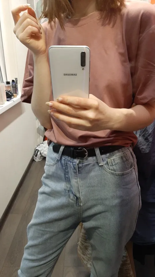 Вот так выглядит размер М на параметрах: рост 177см, 82/59/88, слишком оверсайз, по факту футболка в груди 100см, но мне на удивление нравится. Ткань - приятная синтетика, легко отпаривается, есть немного ниток, но не критично. Когда заказывала, было немного отзывов, и одна девушка написала параметры близкие к моим и выложила фото где футболка ей в облипку, видимо она измерялась последний раз лет в 12 Девушки, вы когда пытаетесь казаться худее и пишете параметры меньше своих настоящих, вы обманываете не только себя, но и других покупателей, которые потом поведутся на ваше враньё и закажут не свой размер!
