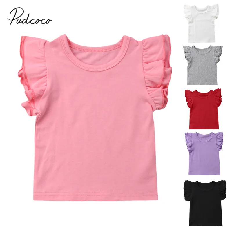 2019 летняя одежда для малышей, для маленьких девочек и мальчиков, летающие рукава, топы, рубашки, наряды, детская однотонная одежда, футболка