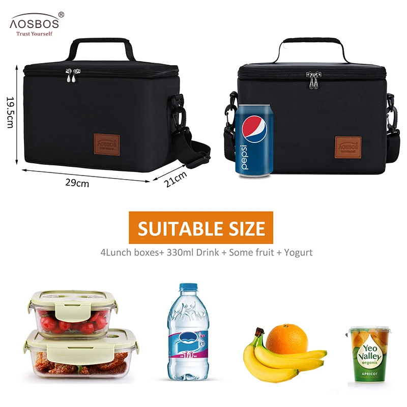 Aosbos однотонная портативная Термосумка для ланча для женщин, детей, мужчин, модная сумка-холодильник для пикника, изолированная дорожная сумка-тоут для еды, коробка