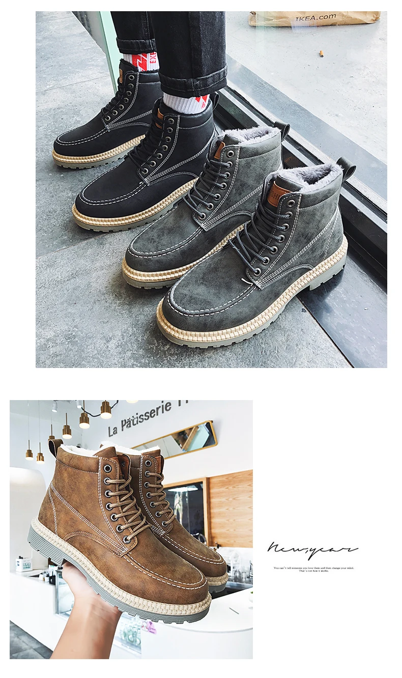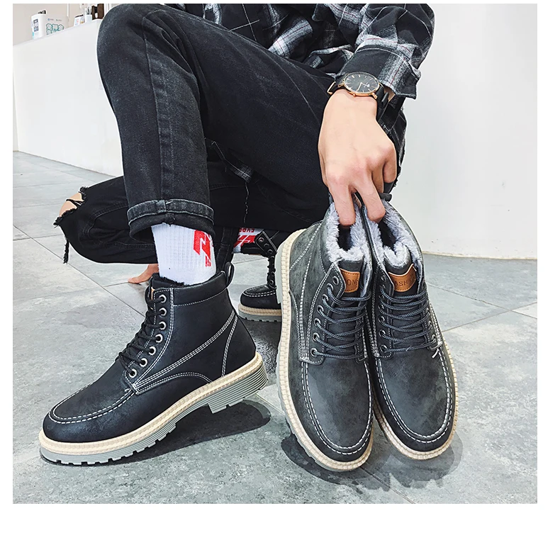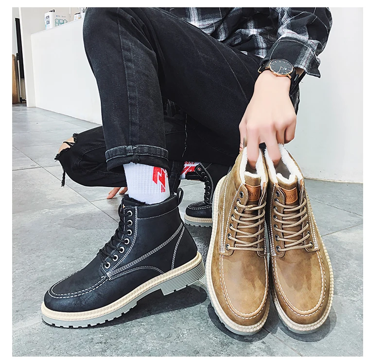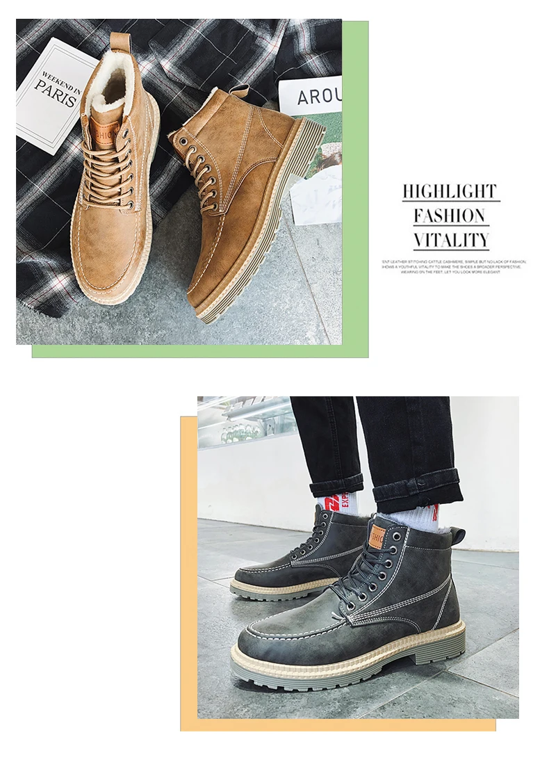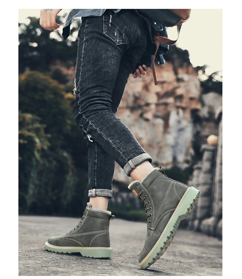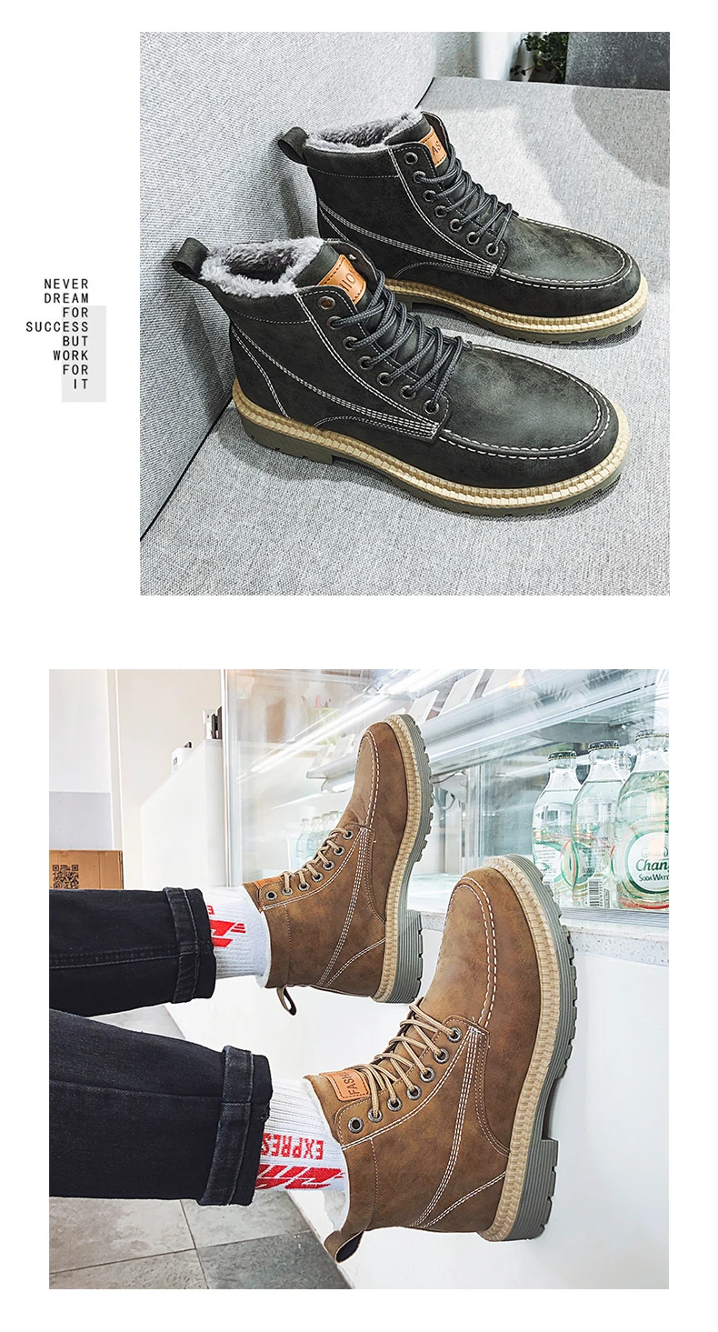 AODLEEмужские ботинки; Плюшевые теплые модные мужские зимние ботильоны Челси; Высокая Повседневная обувь; Мужская кожаная обувь; botas hombre