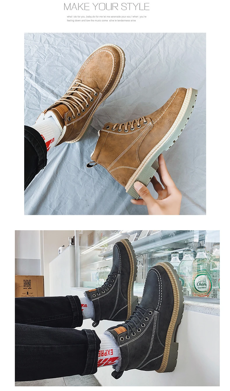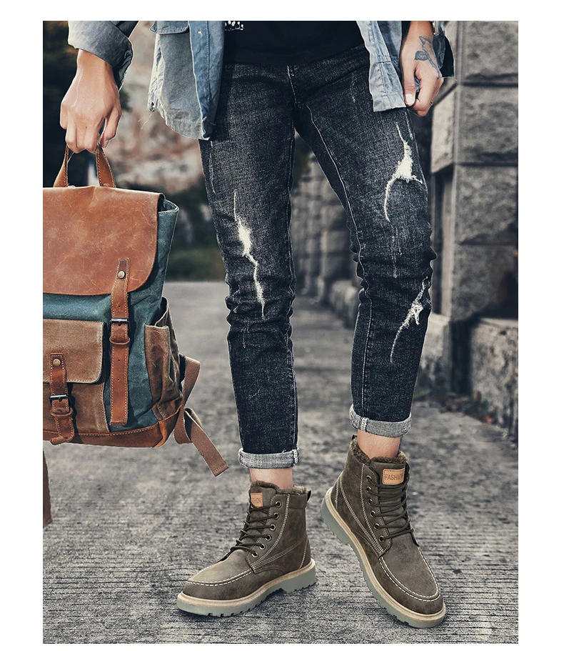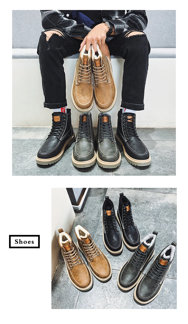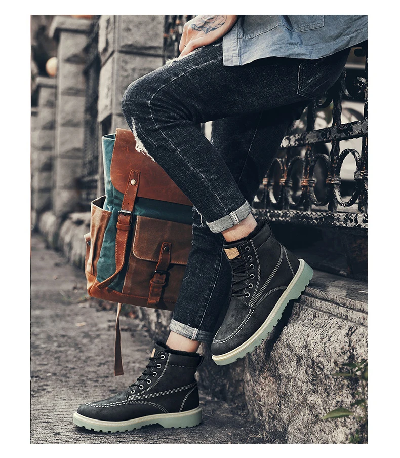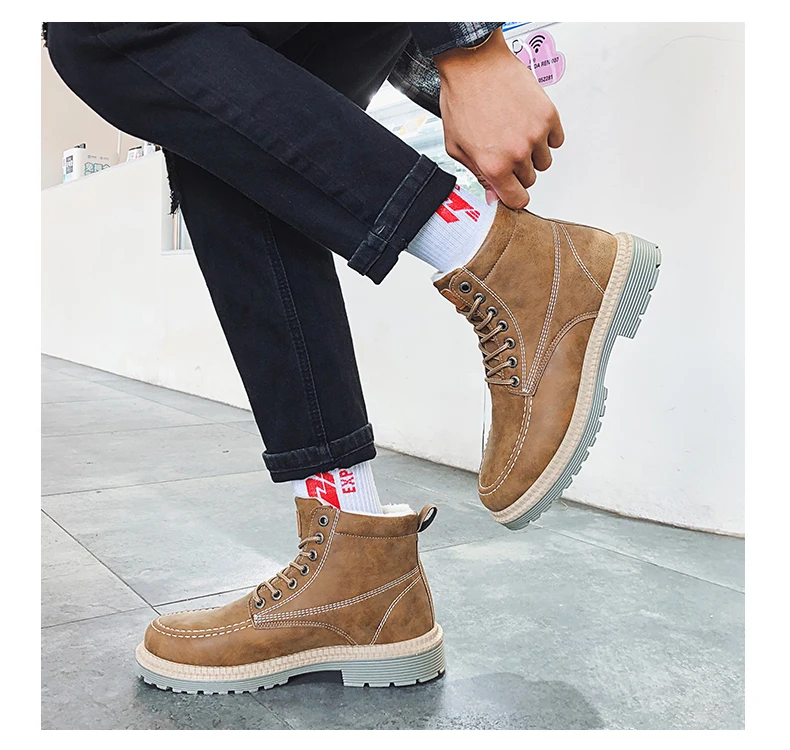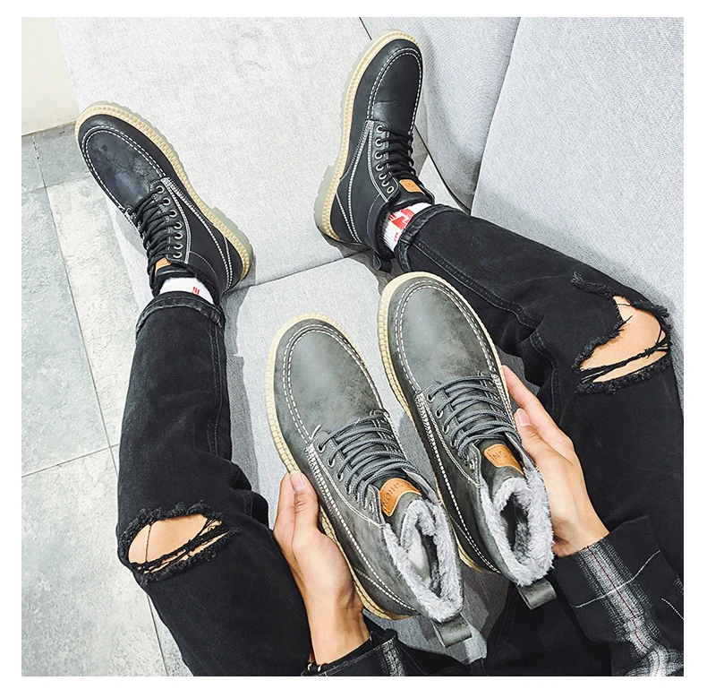 AODLEEмужские ботинки; Плюшевые теплые модные мужские зимние ботильоны Челси; Высокая Повседневная обувь; Мужская кожаная обувь; botas hombre