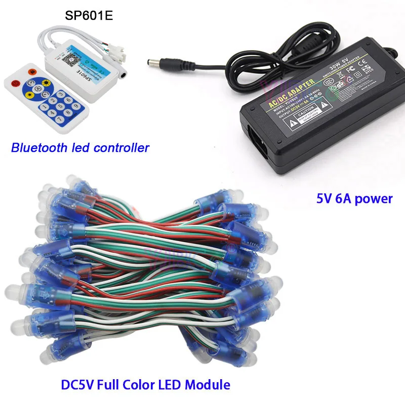DC5V 50 шт. полноцветный IP68 WS2811 IC RGB Pixel Светодиодный светильник, пиксели RGB контроллер полосы, DC 5V 6A светодиодный блок питания Adapte