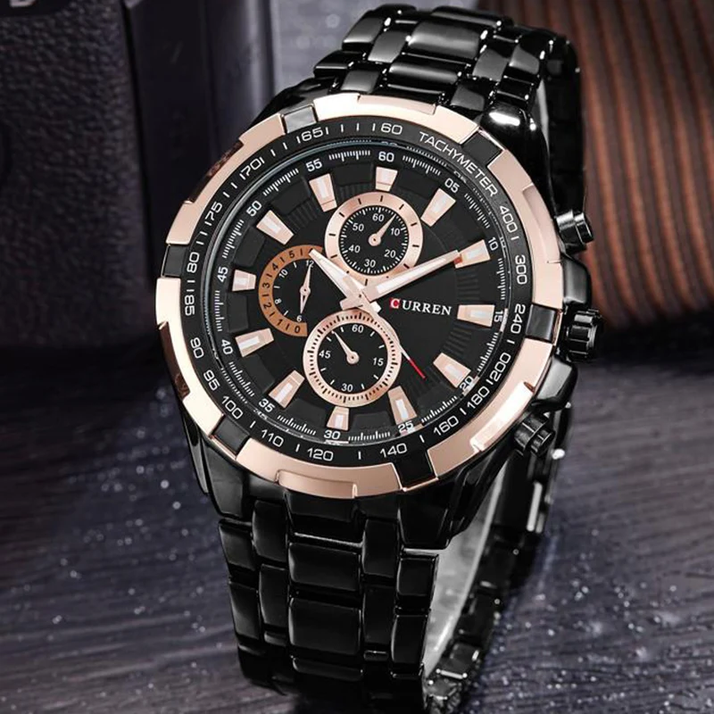Часы наручные CURREN Мужские кварцевые, роскошные брендовые модные повседневные водонепроницаемые полностью стальные спортивные