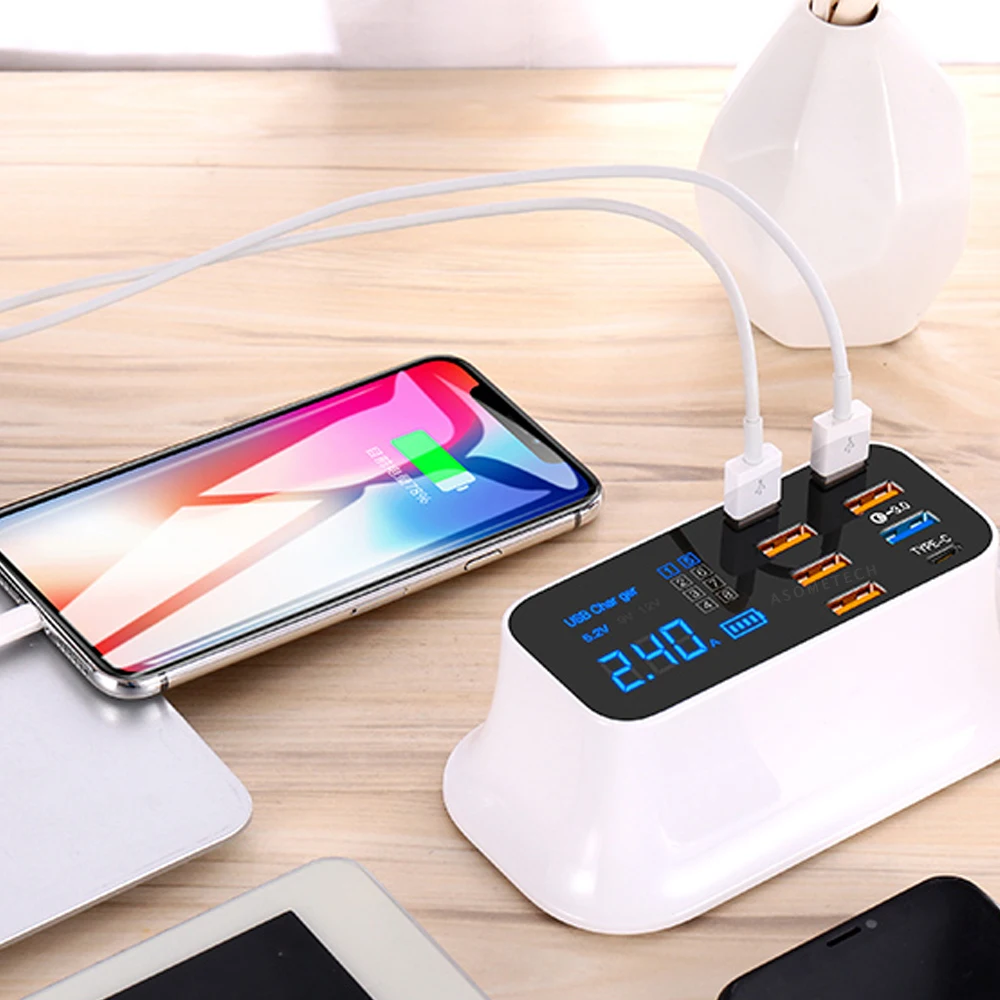 Быстрая зарядка 3.0 Умная Зарядное устройство USB типа C Зарядное устройство USB для телефона Быстрая зарядка Настольный адаптер для розетки светодиодный дисплей для iphone
