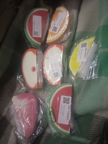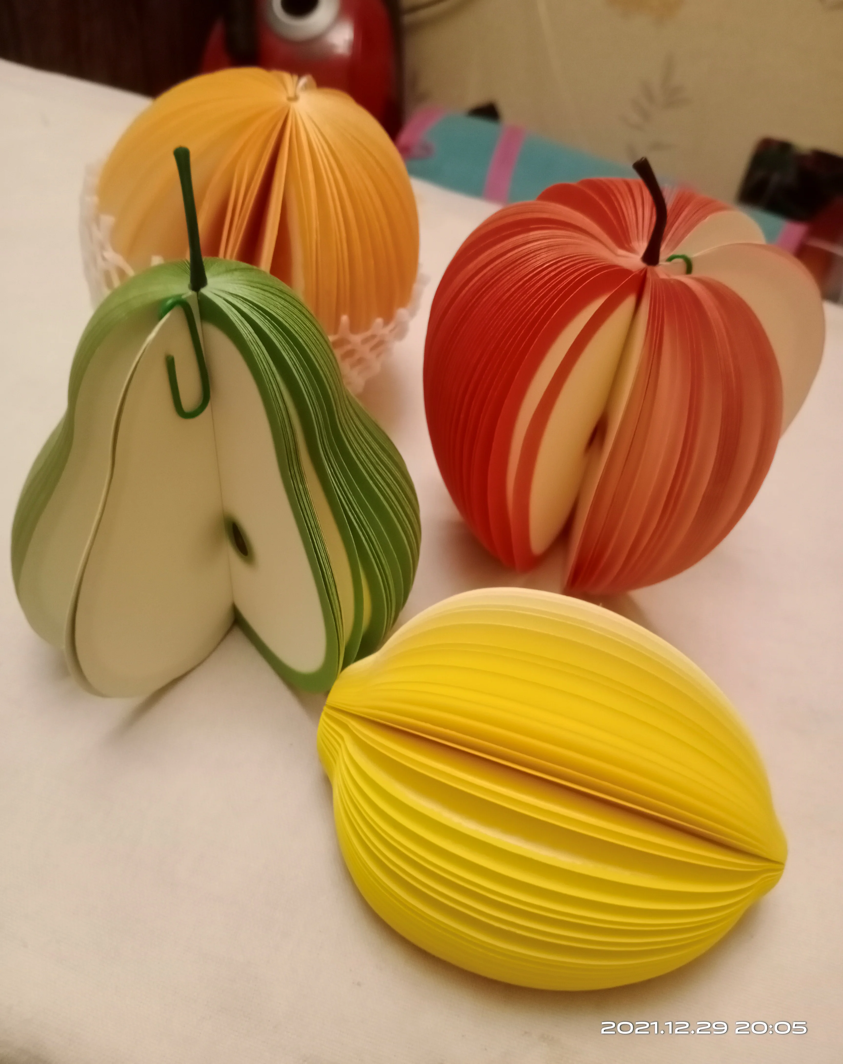 Посылка пришла за 7 дней. Заказывала доставку за 60 руб. Стикеры вау! Каждый фрукт в индивидуальном пакете, в наборе к каждому сеточка, к яблоку и груше ещё и веточки.