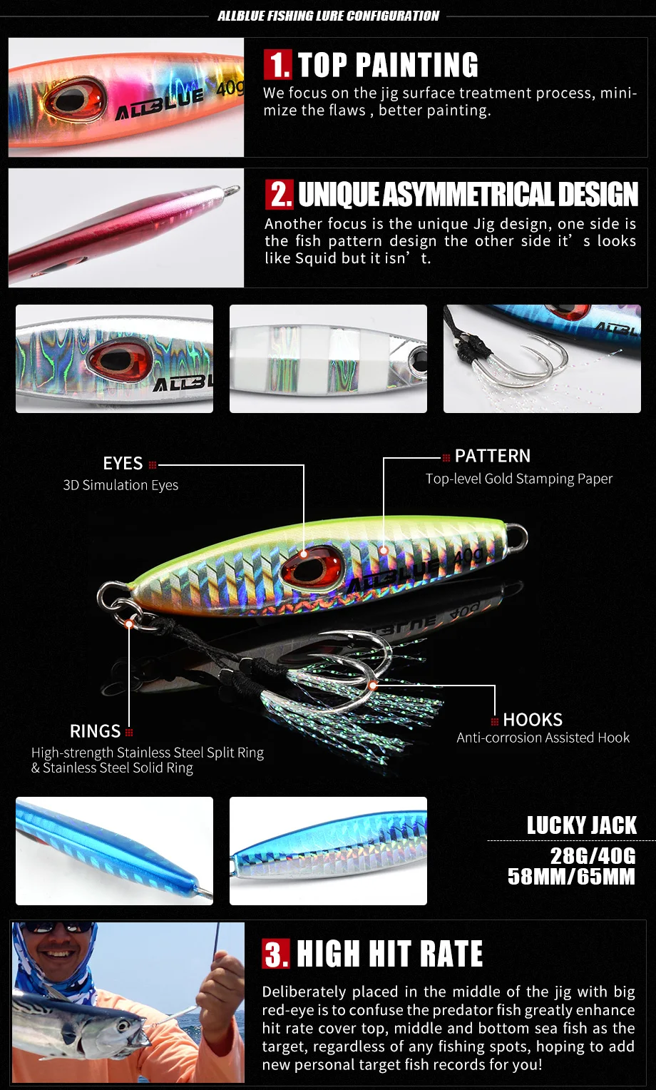ALLBLUE Lucky Jack, медленный металлический джиг, 28 г, 40 г, искусственная приманка для рыбалки на берегу, приманка для забрасывания, ложка для джиггинга, рыболовная снасть