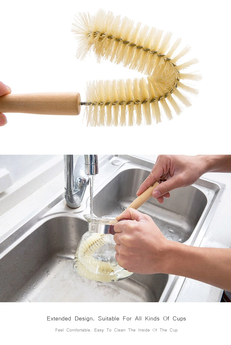 OYOURLIFE гибкий чайник из дерева, с длинной ручкой, щетка для чашки, стеклянная чашка, бутылка для молока, очиститель, скруббер, товары для домашней кухни