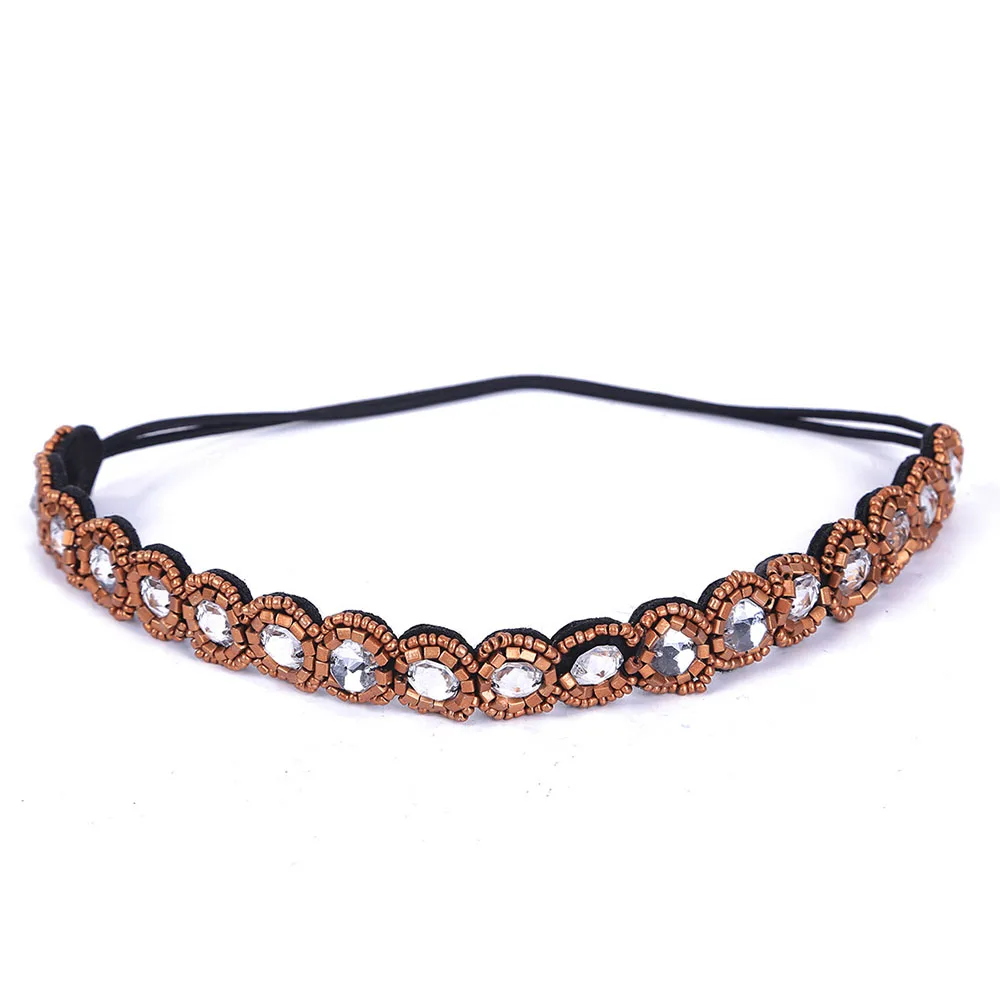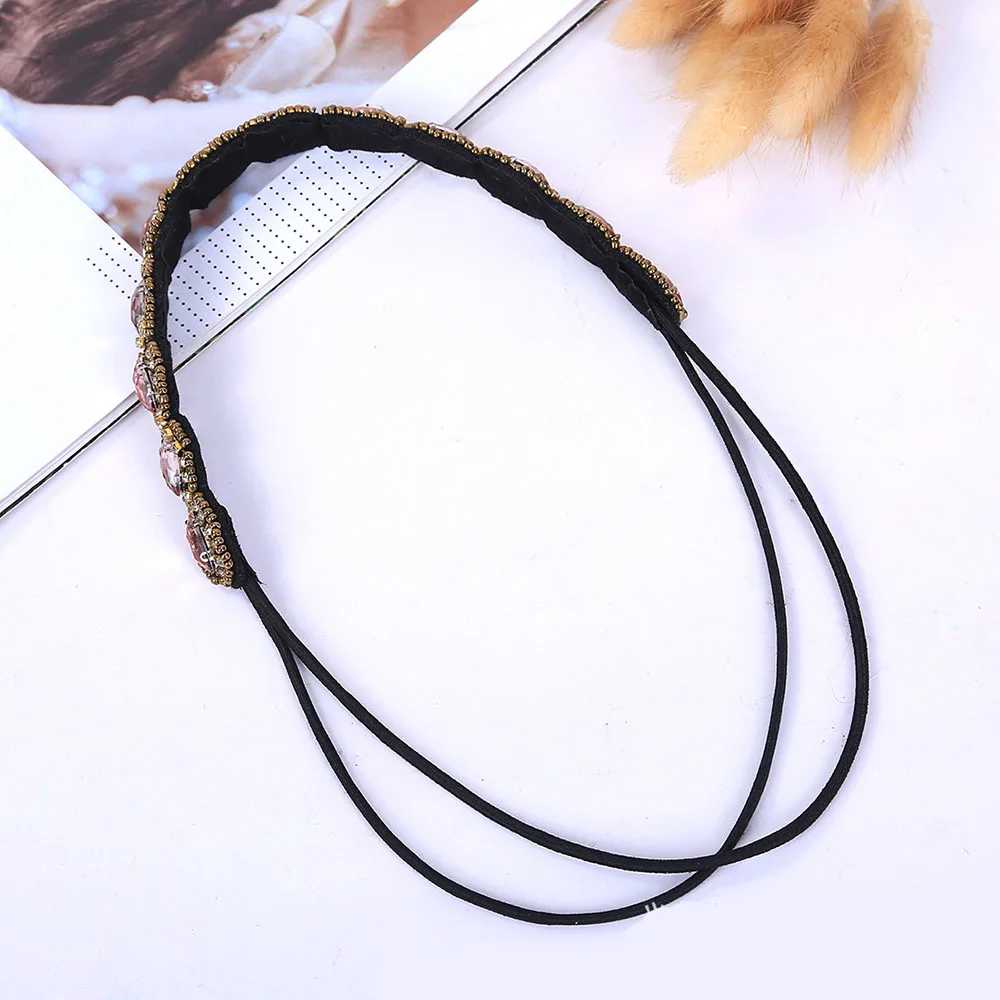 Эластичная повязка для волос ручной работы с бусинами для женщин, Нескользящая лента для волос с драгоценными камнями в Европейском стиле, свадебная повязка на голову для девушек