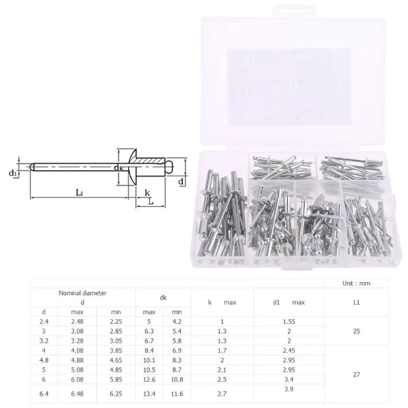 120 шт.компл. M3.2 * 712 M4 * 8911 GB12618 алюминиевые заклепки для украшения ногтей поп-заклепки для мебели набор в ассортименте