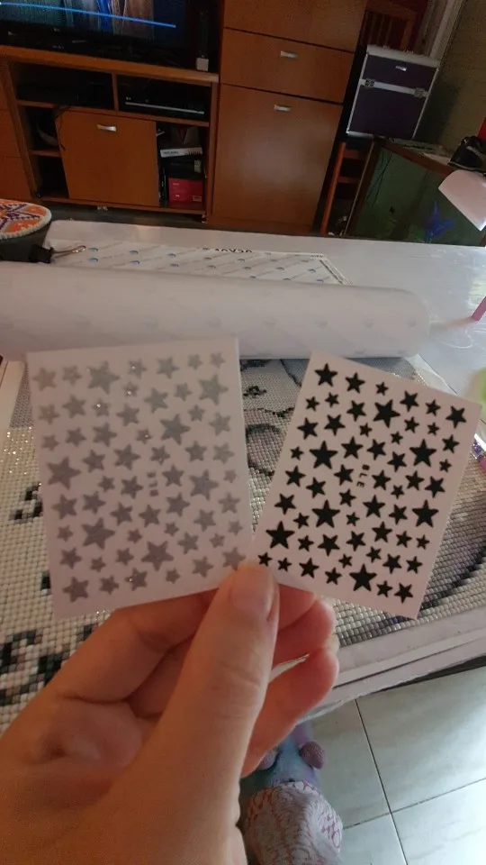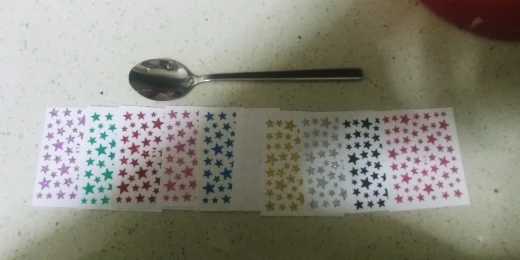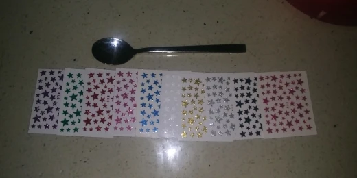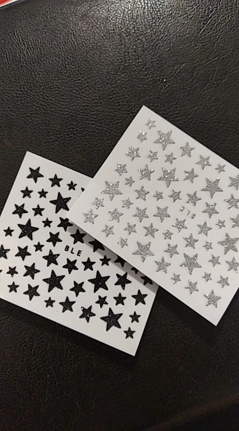 Я купил 4 разных цвета, из которых только 3 прибыли. Но что касается этих черных звезд, они поставляются с блестками, разбросанными по краям, что делает их кончиками звезд неэстетичными.