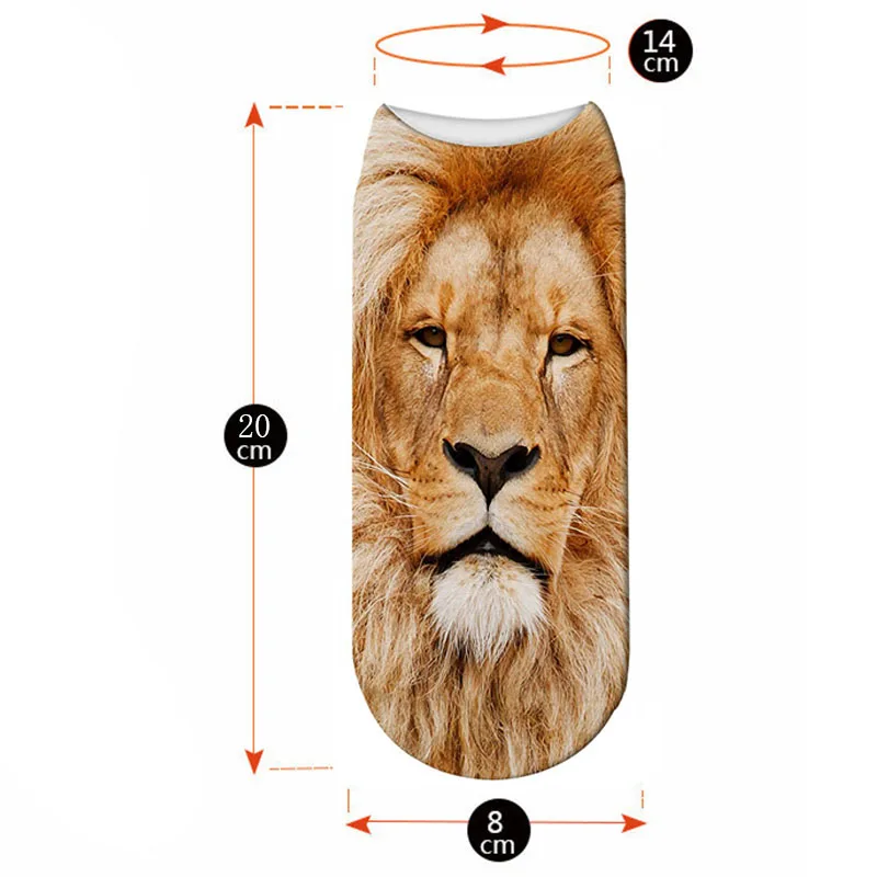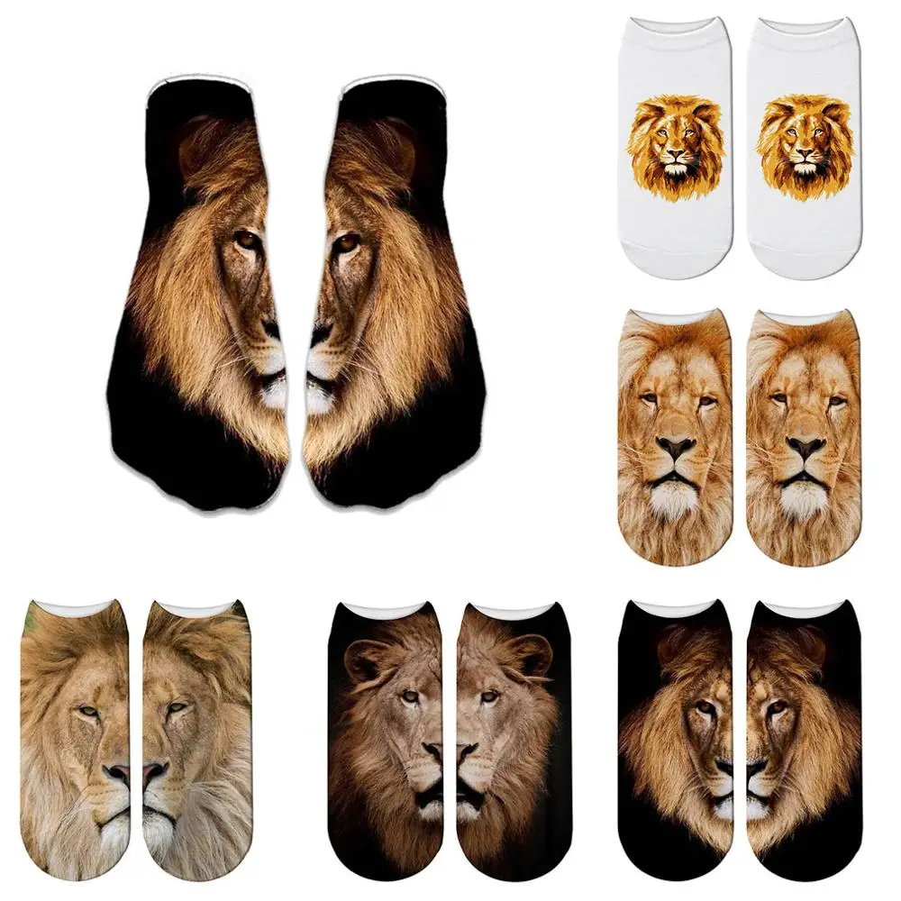 Новые стильные забавные носки с 3D принтом льва, короткие женские носки с животными, новые ужасные носки, модные милые низкие носки до щиколотки для мужчин